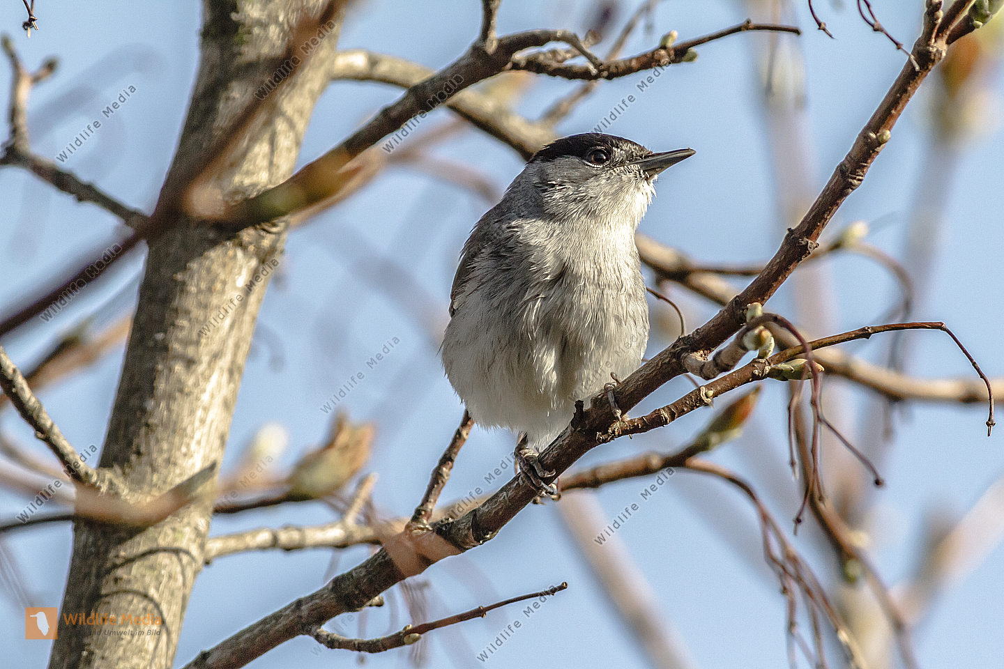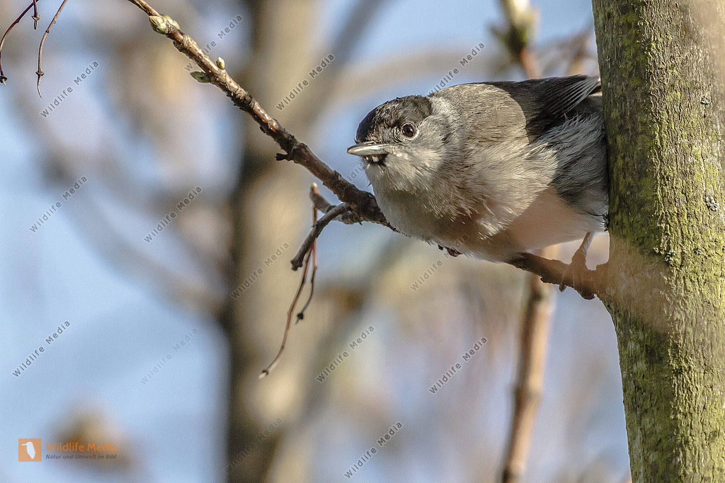 Eine Mönchsgrasmücke sitzt auf einem Ast