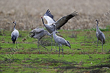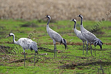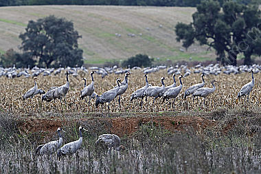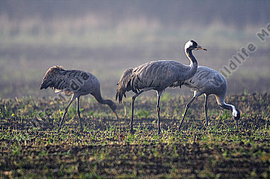 Weibliches Reh Capreolus capreolus mit Kranichen