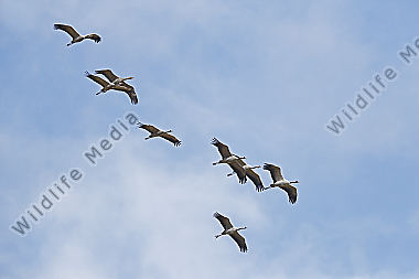 Ziehende Kraniche über dem Biosphärenreservat Bliesgau