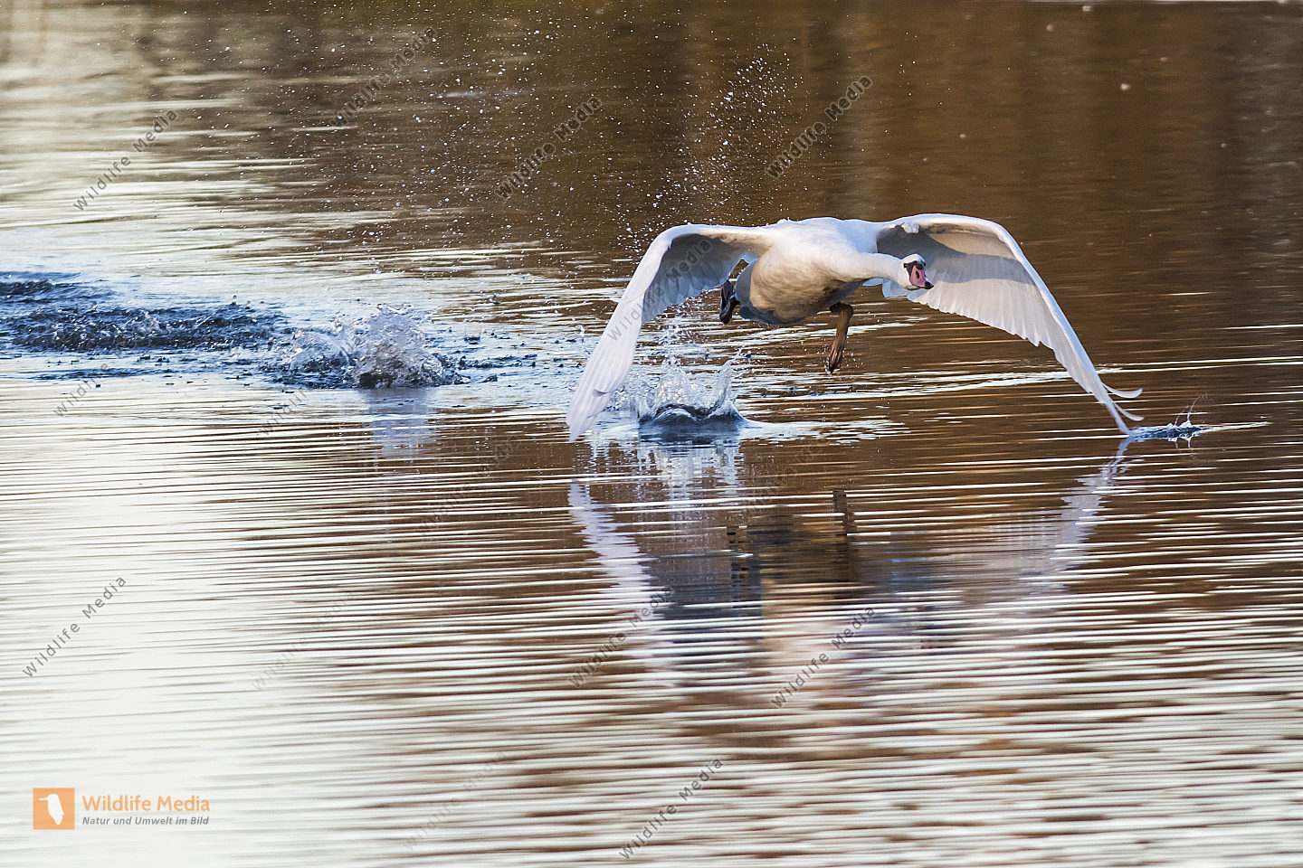 Höckerschwäne beim Auffliegen