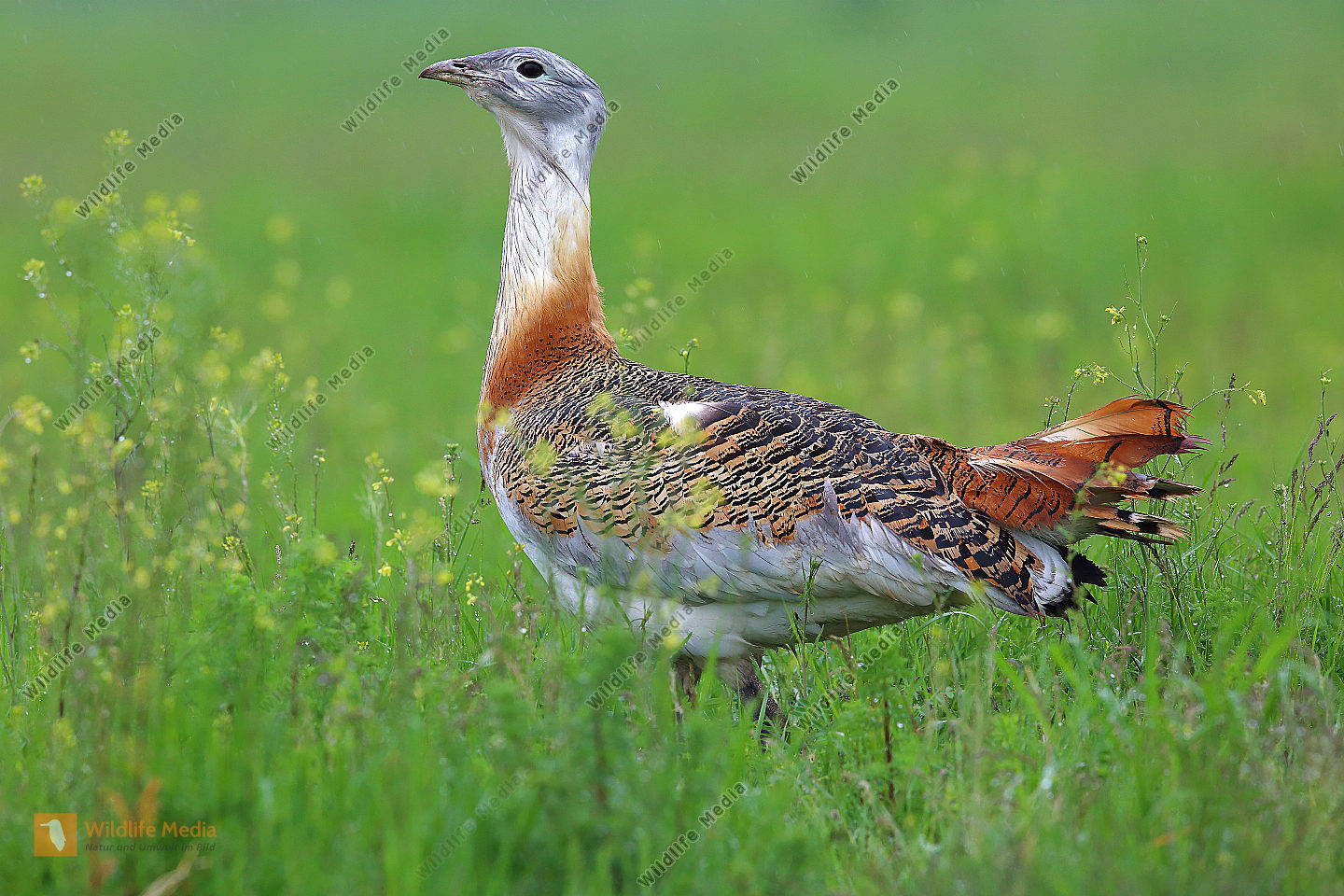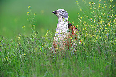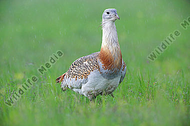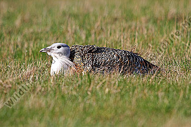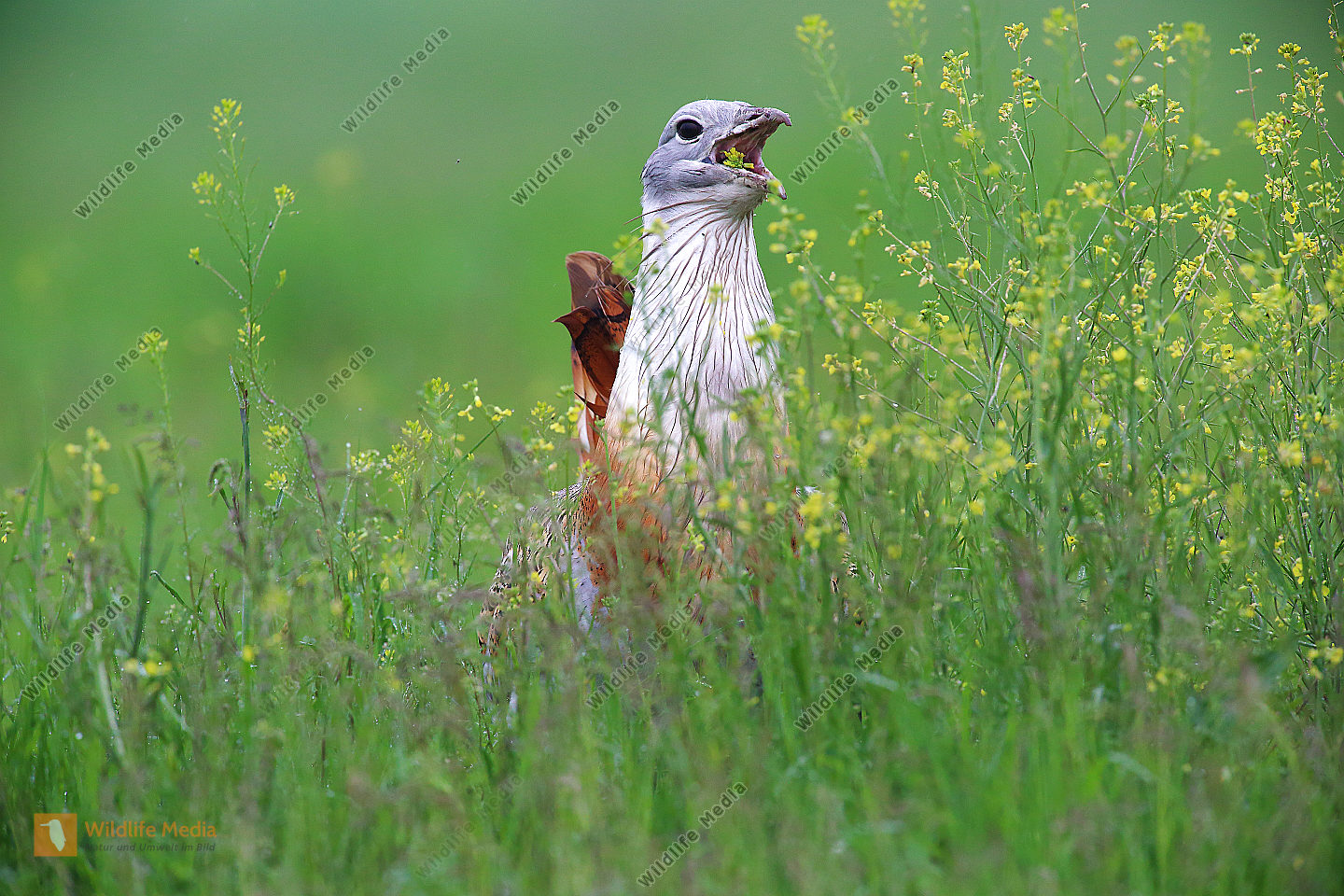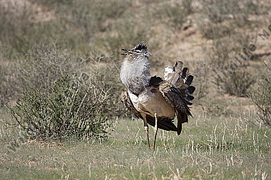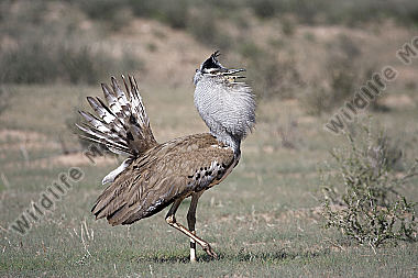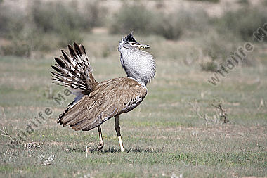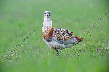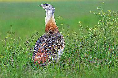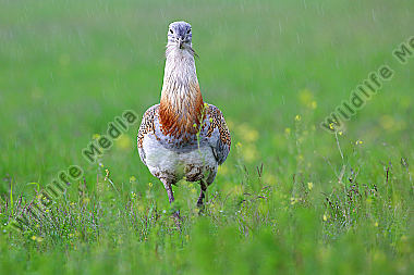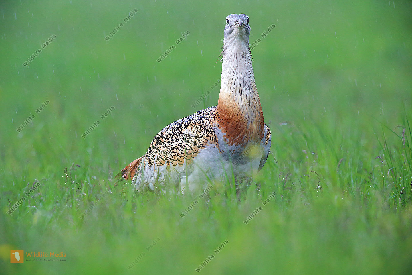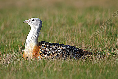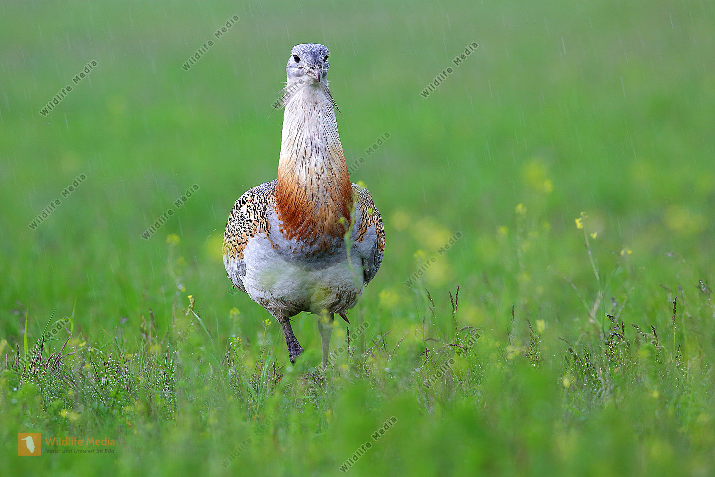 Großtrappe balzender Hahn mit Henne im Hintergrund