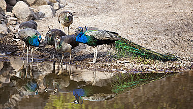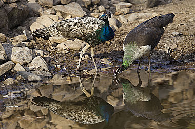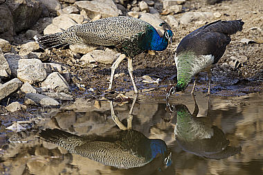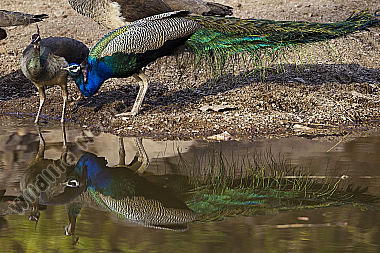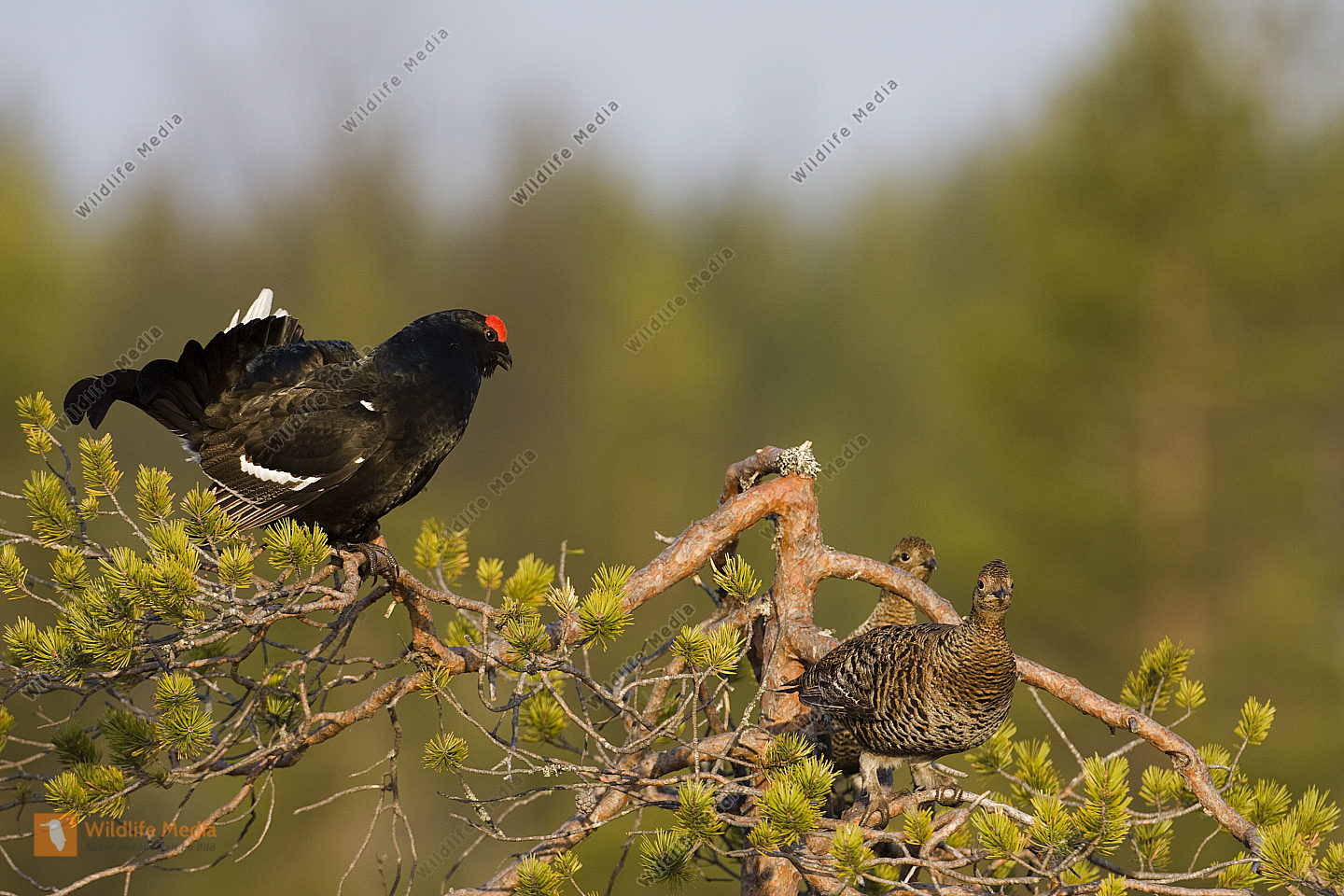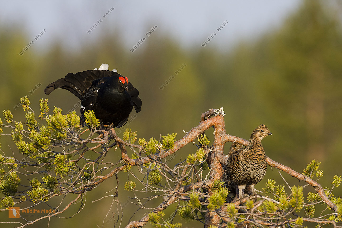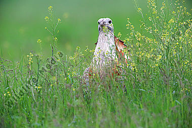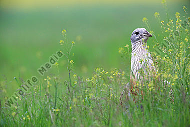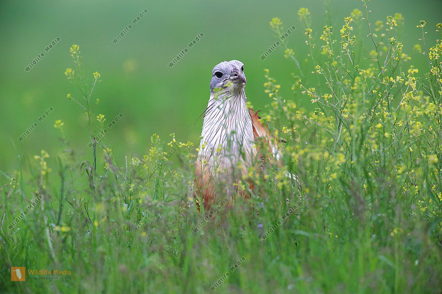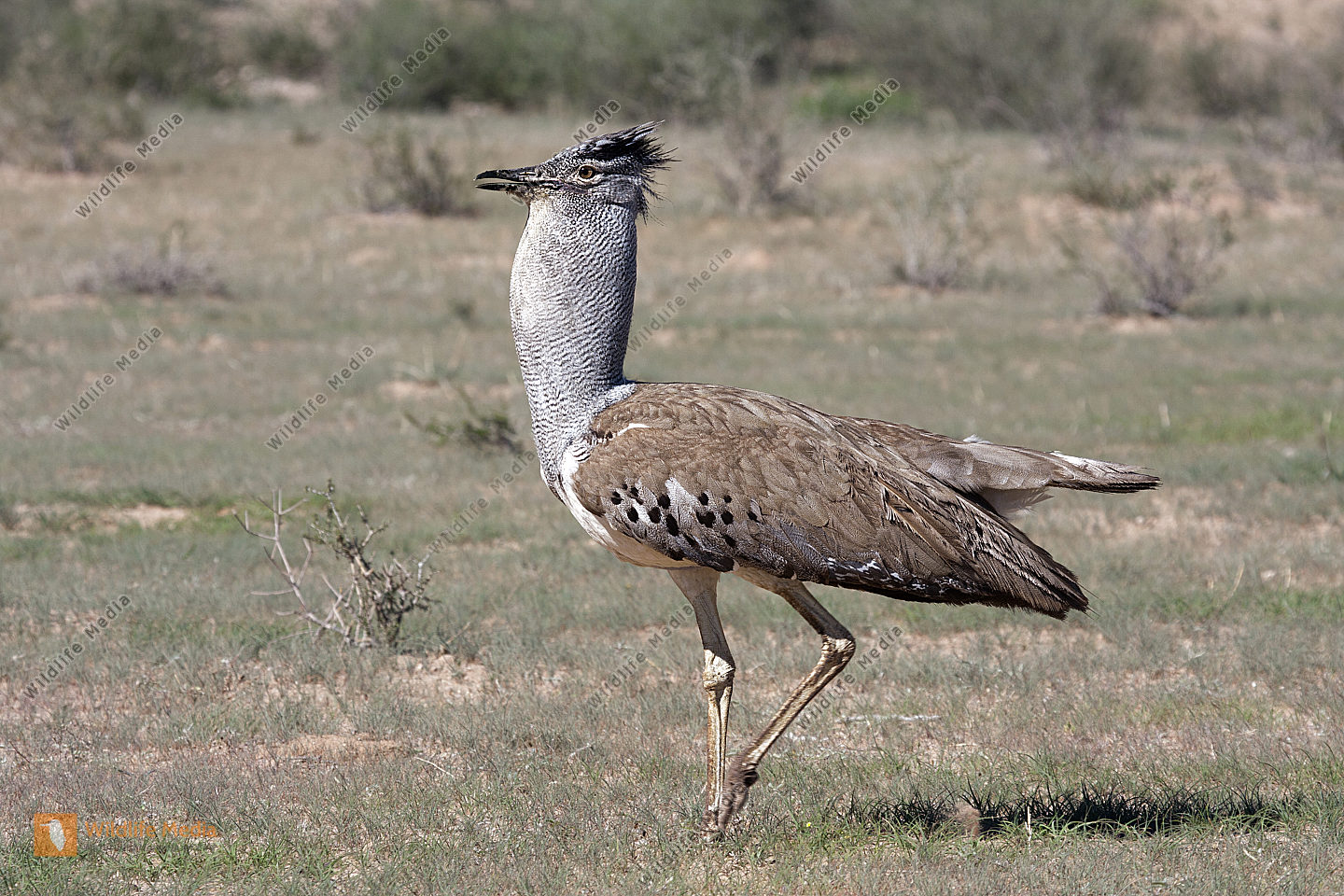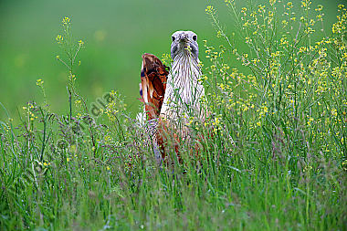 Großtrappe balzender Hahn mit Henne im Hintergrund