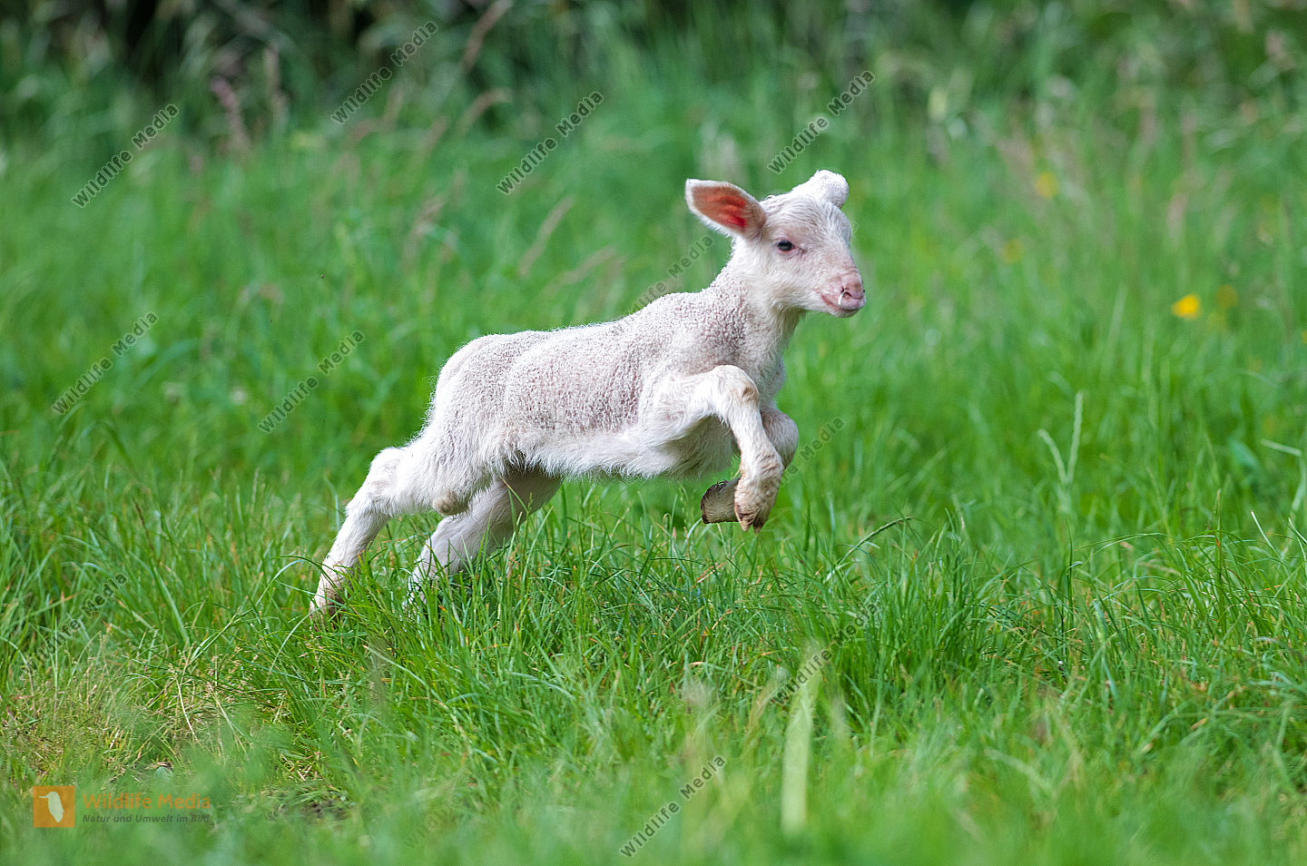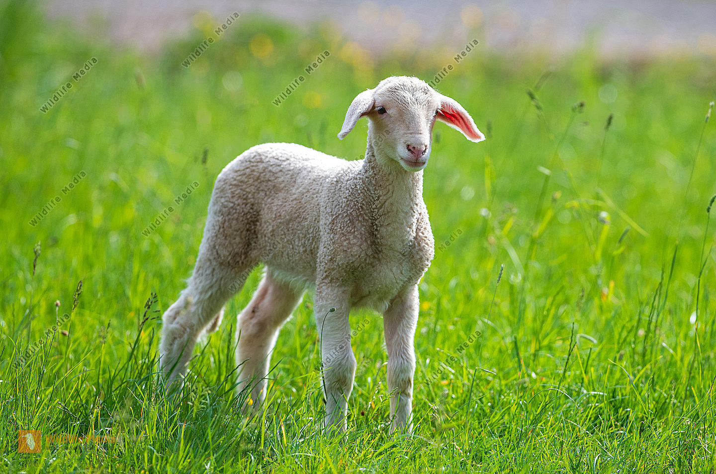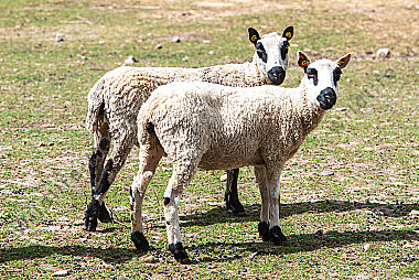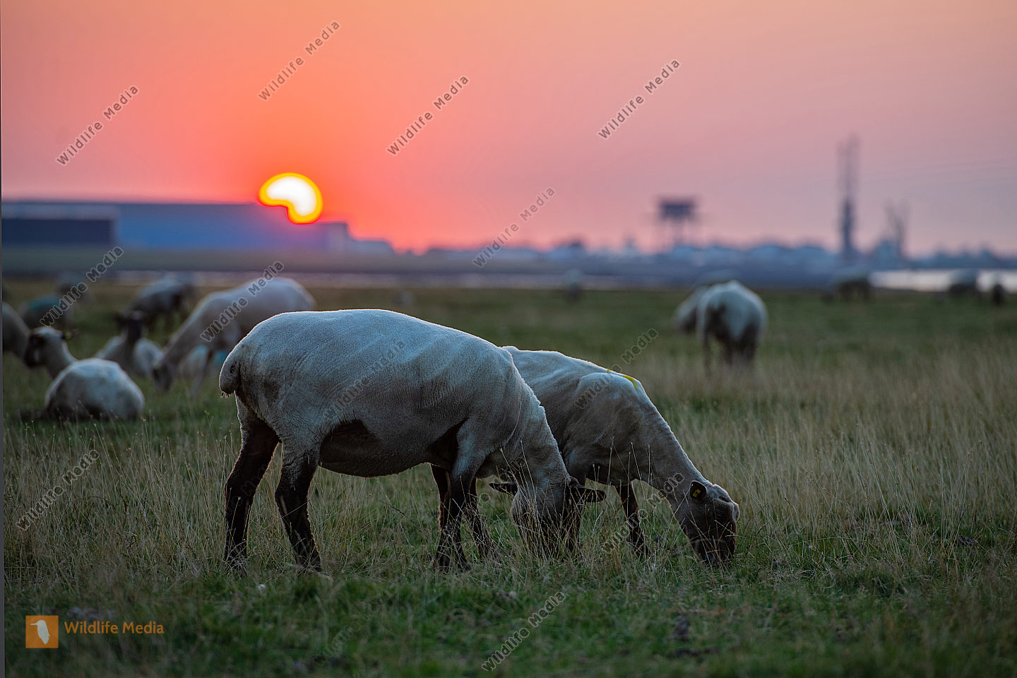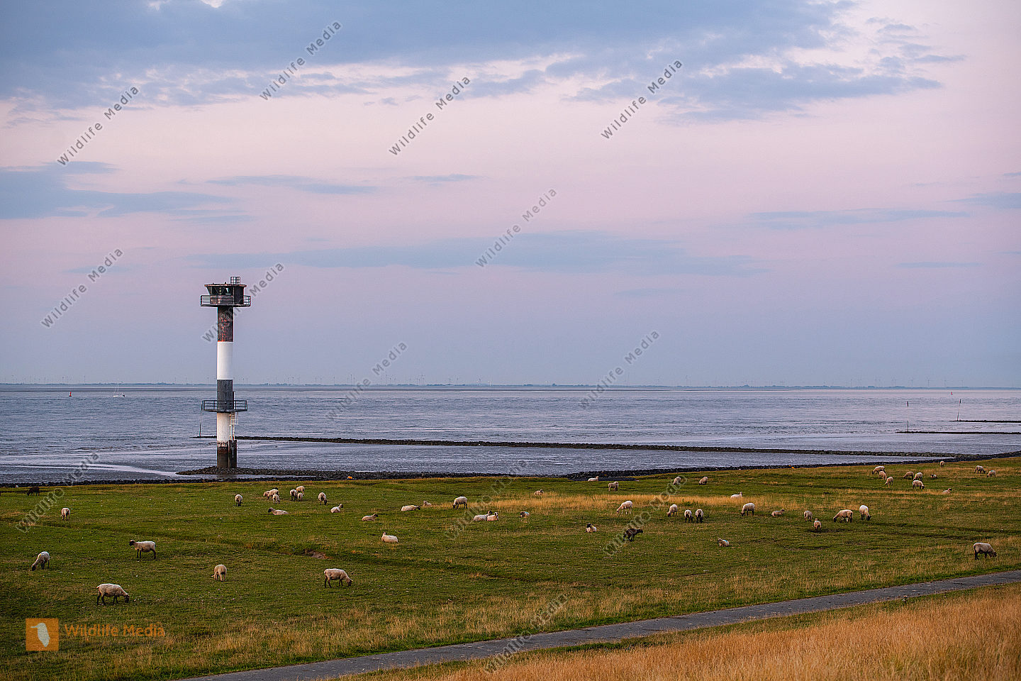 Texelschaf Ovis aries auf dem Deich/Fehmarn