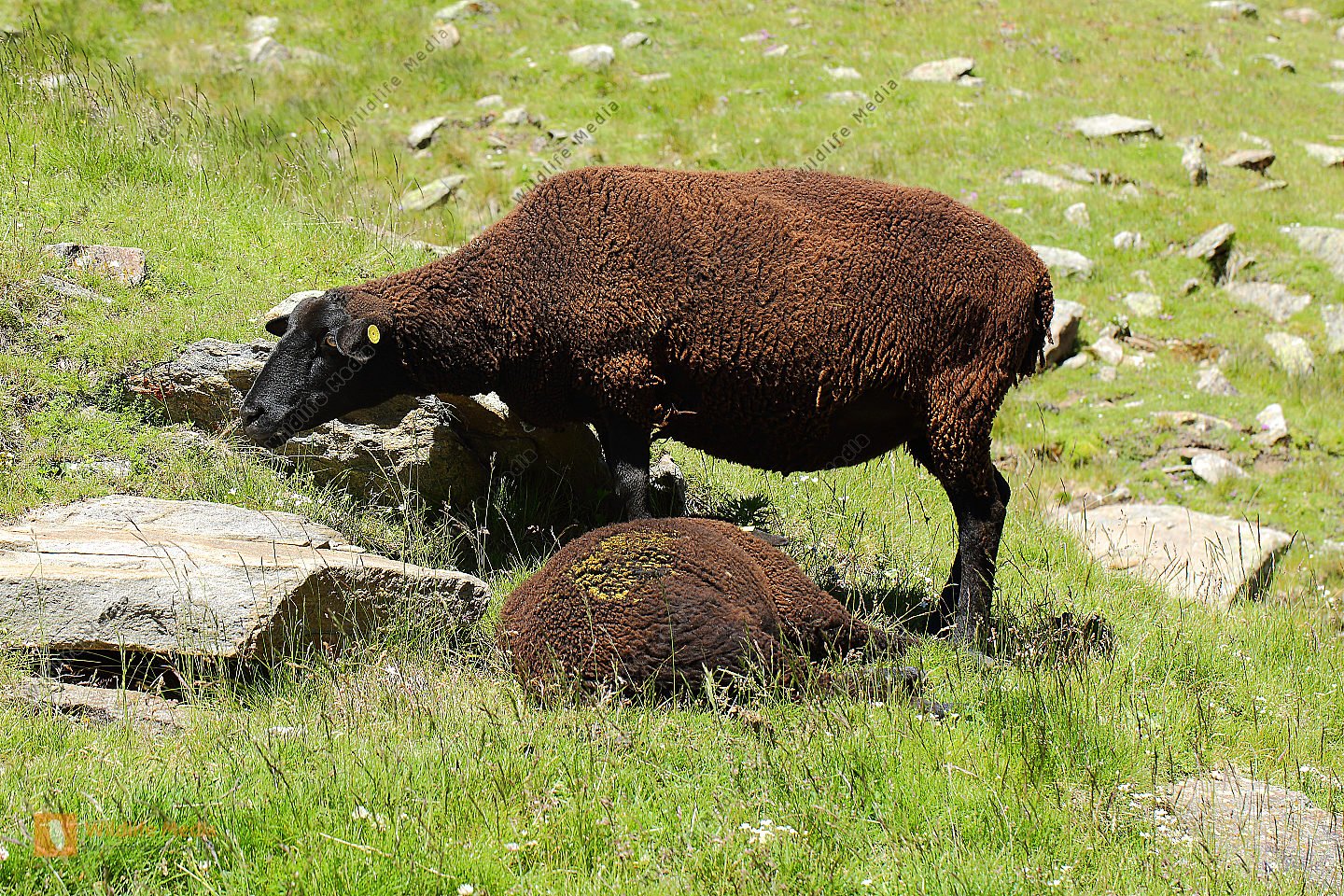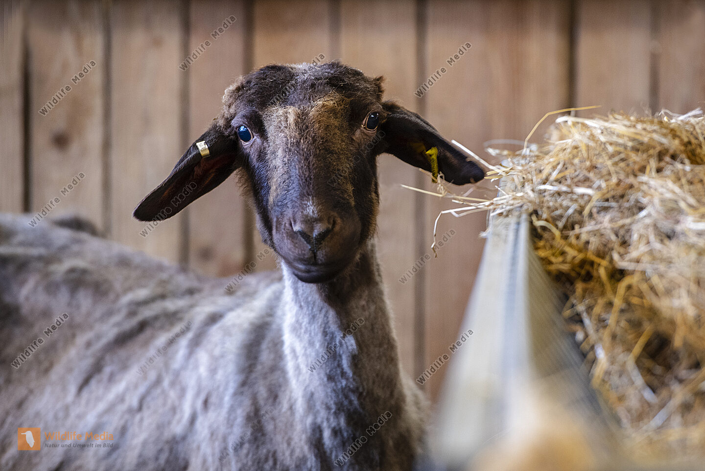 Alpines Steinschaf Muttertier Ovis aries im Stall