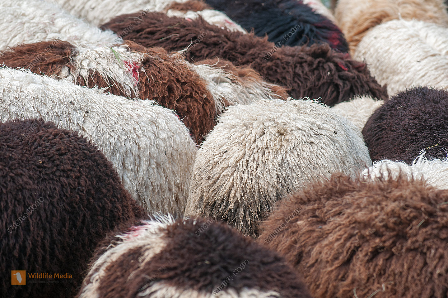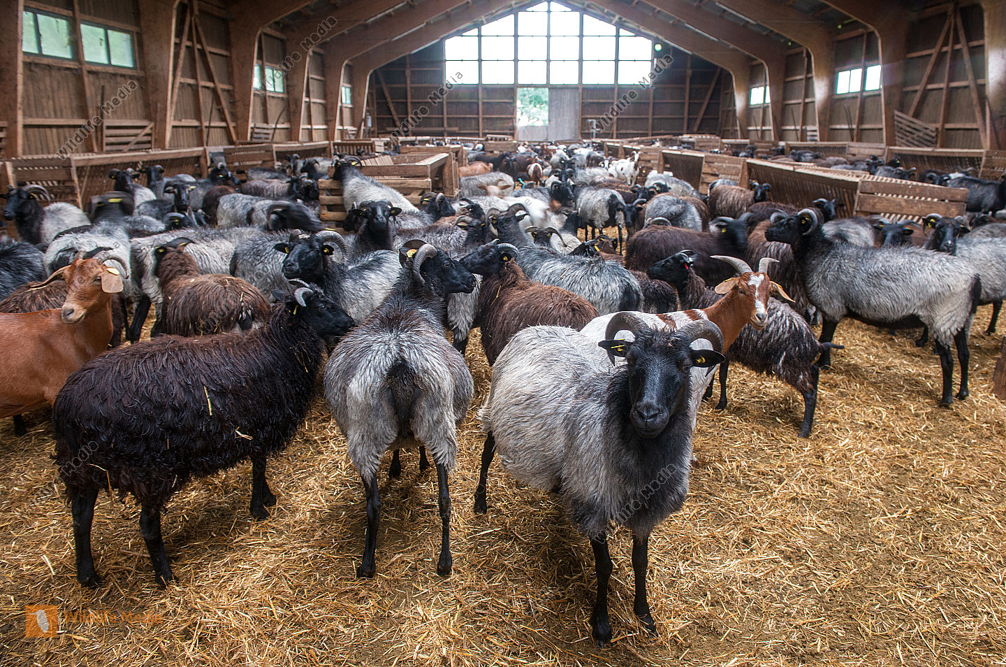 Heidschnuckenherde im Schafstall Tützberghof/Lüneburger Heide