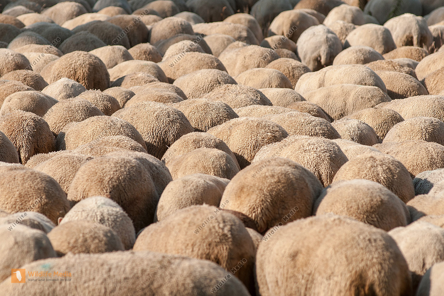 Heidschnucken Ovis aries in der Lüneburger Heide