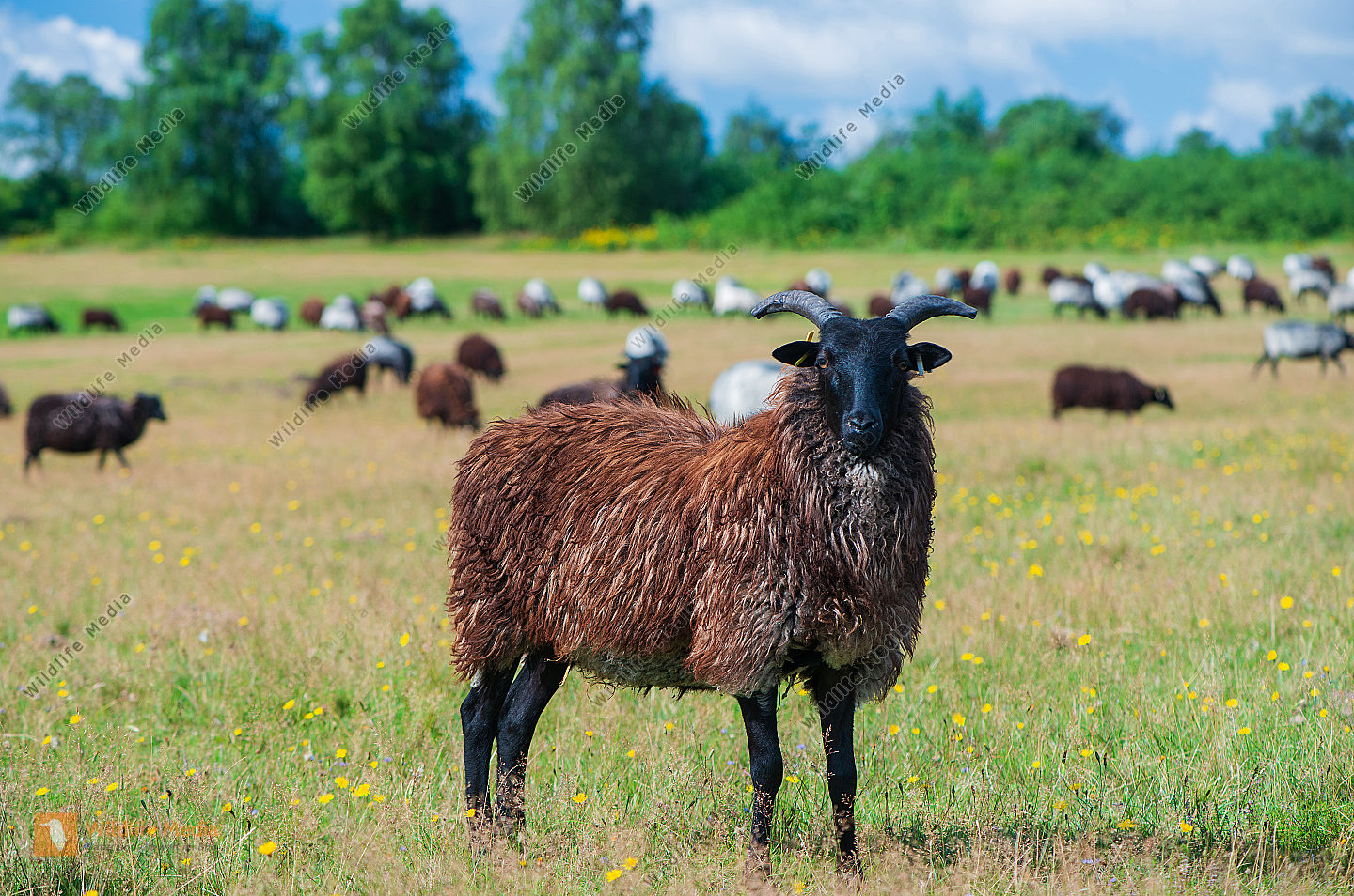 Waldschafe Ovis aries alte Schafrasse Vorderansicht