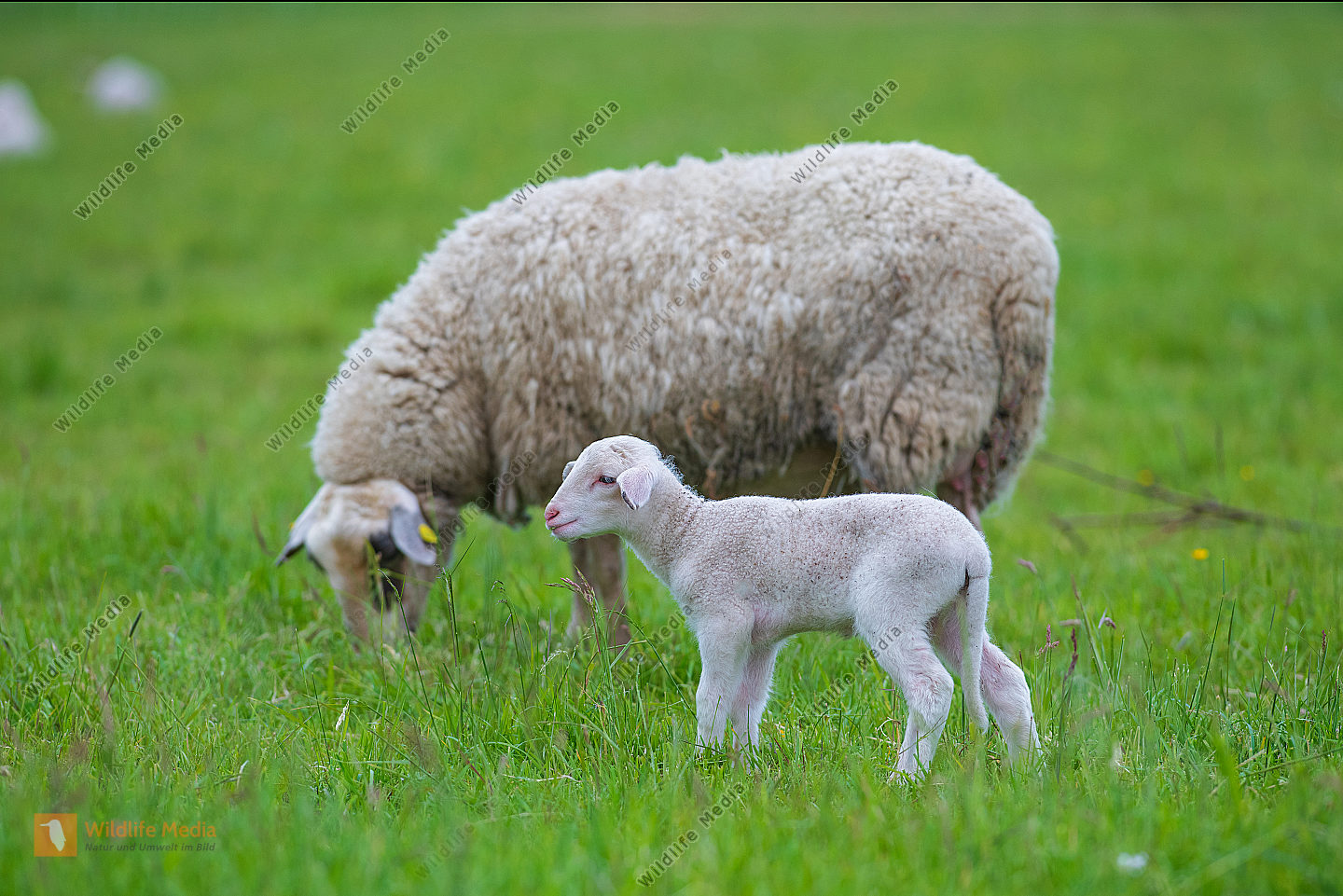 Walliser Schwarznasenschaf Ovis aries auf der Weide