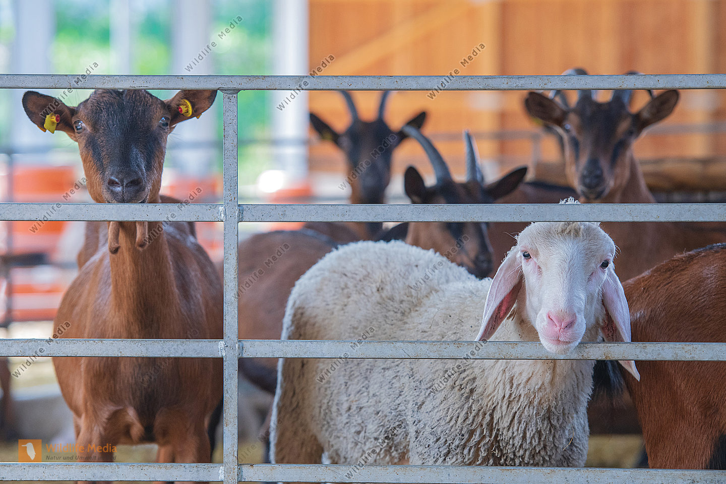Alpines Steinschafe Muttertiere Ovis aries im Stall