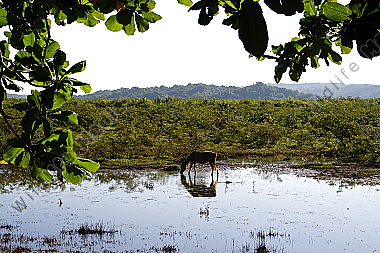 Schafherde Ovis aries am Bach