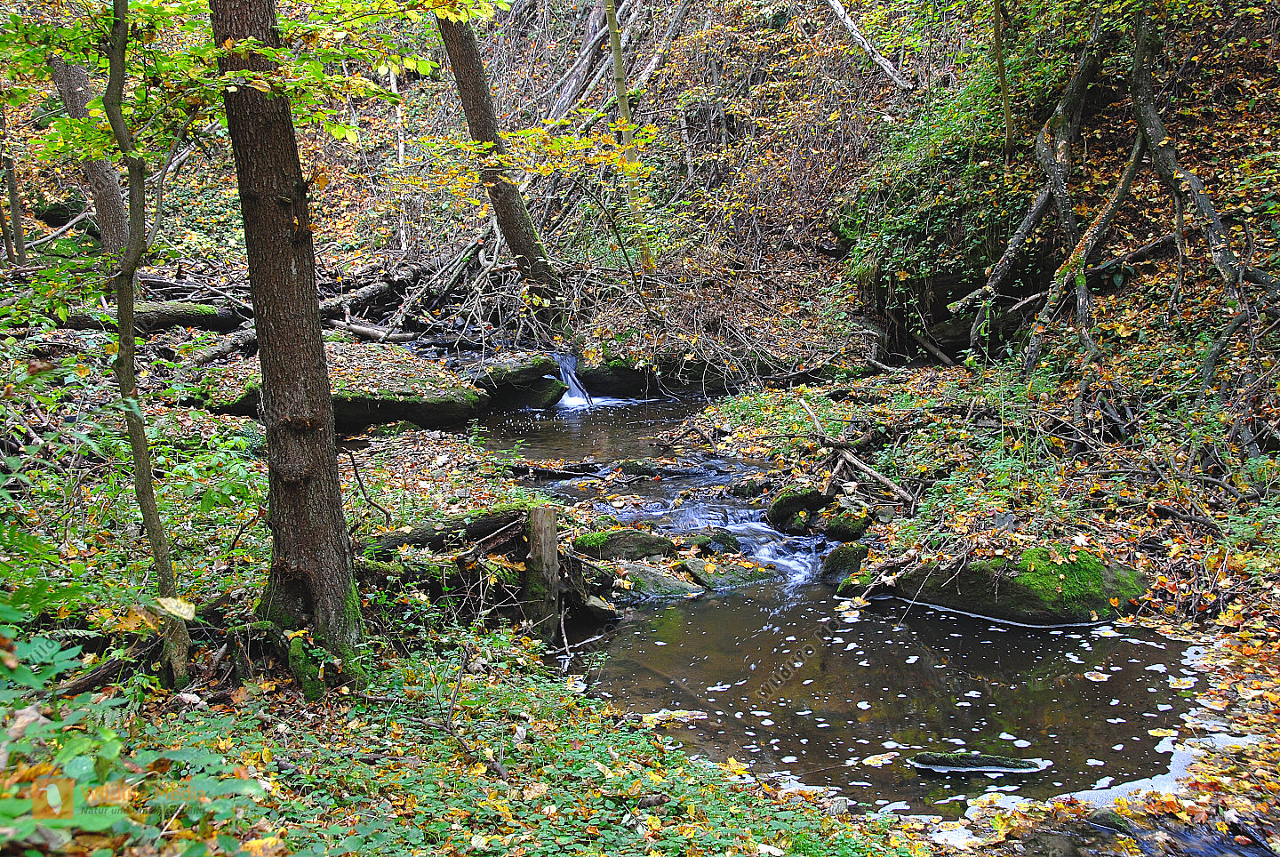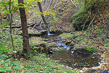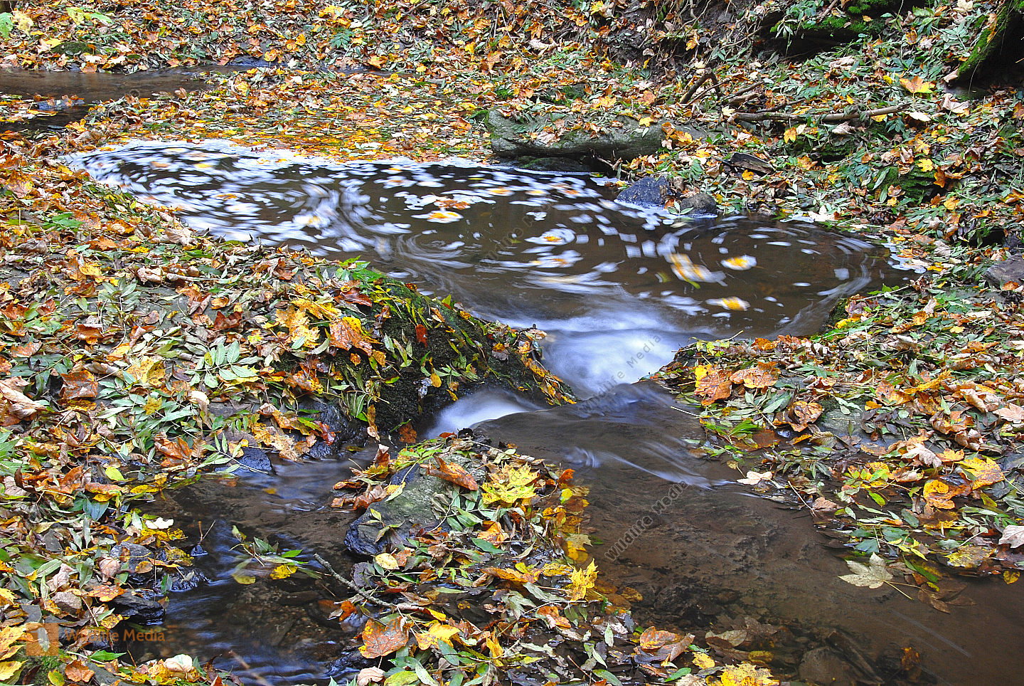 Brühlbach bei Bad Urach im Herbst beim ersten Schnee
