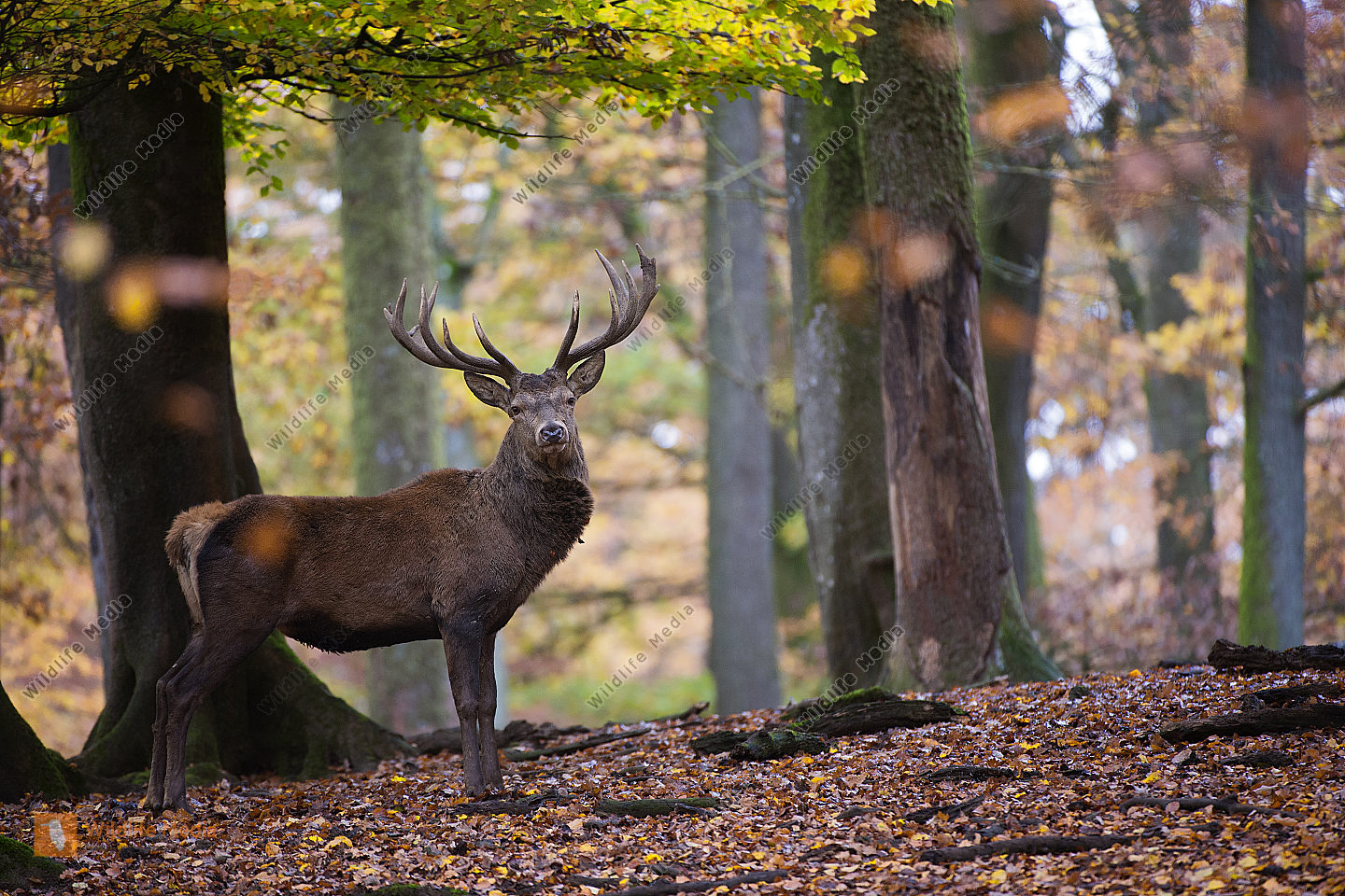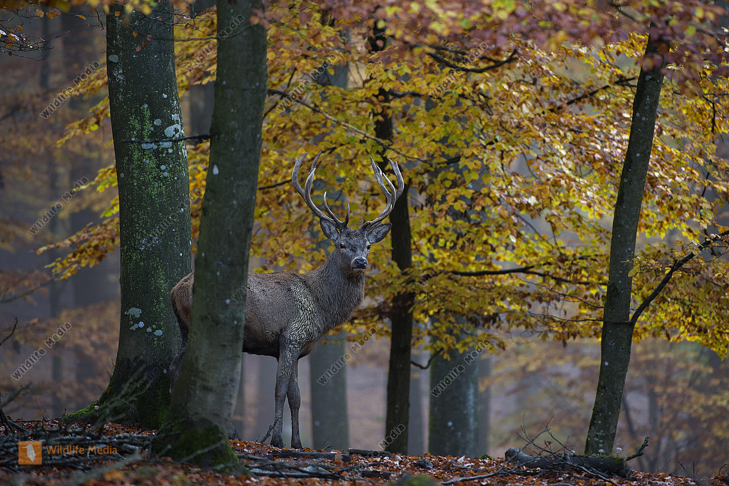 Kapitaler Rothirsch Cervus elaphus im Herbst