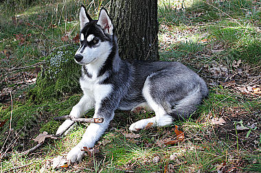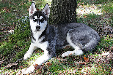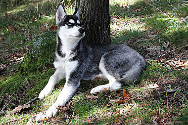 Schlittenhundegespann Canis lupus familiaris beim Rennen