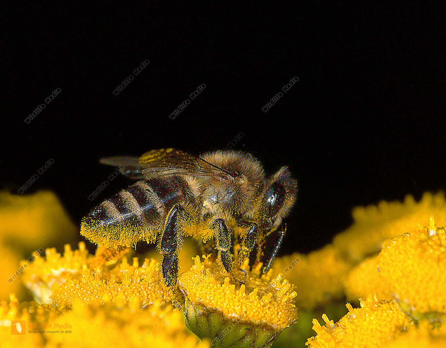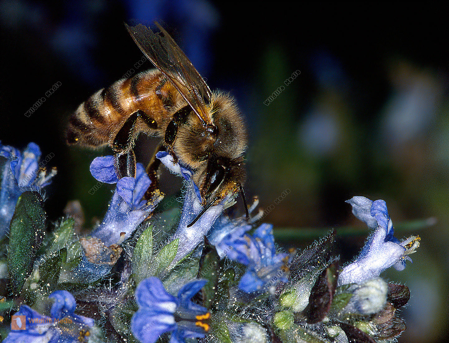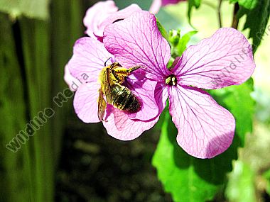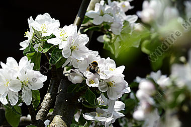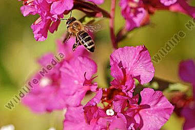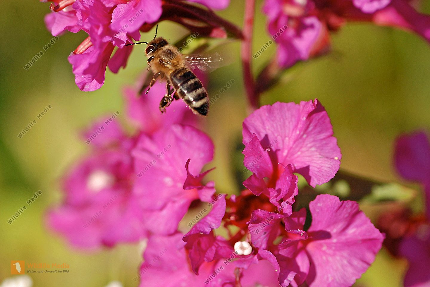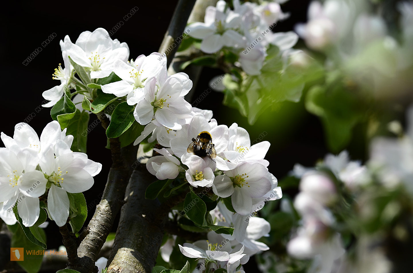 Kleiner Perlmuttfalter mit Biene an weißer Blüte