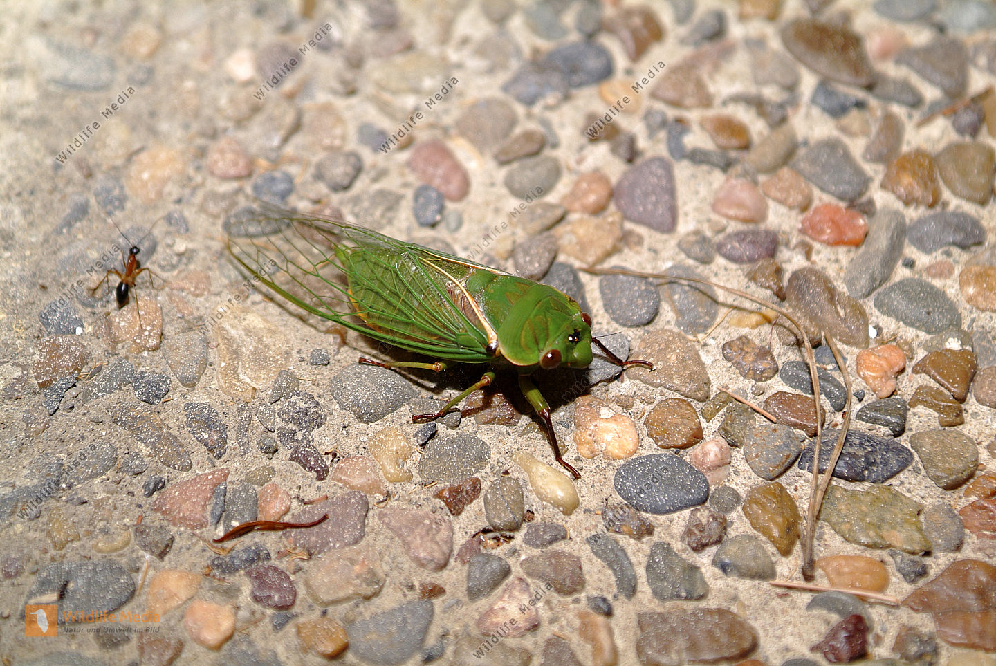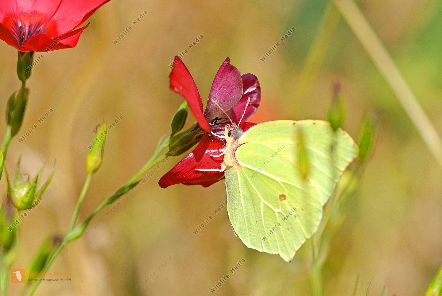 Ein Grünader-Weißling klammert sich an einen Grashalm