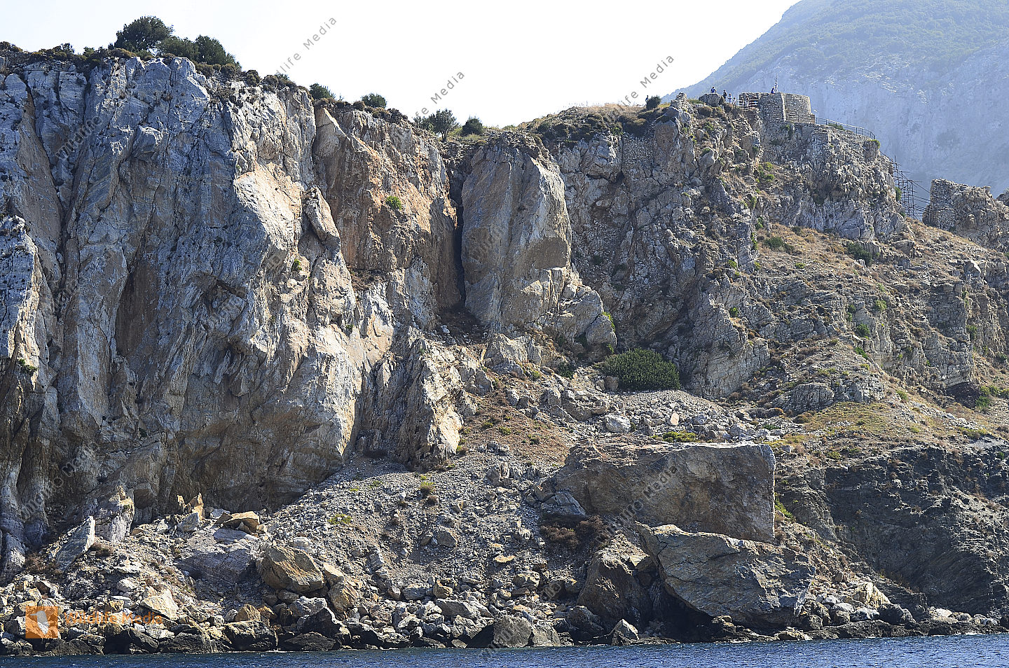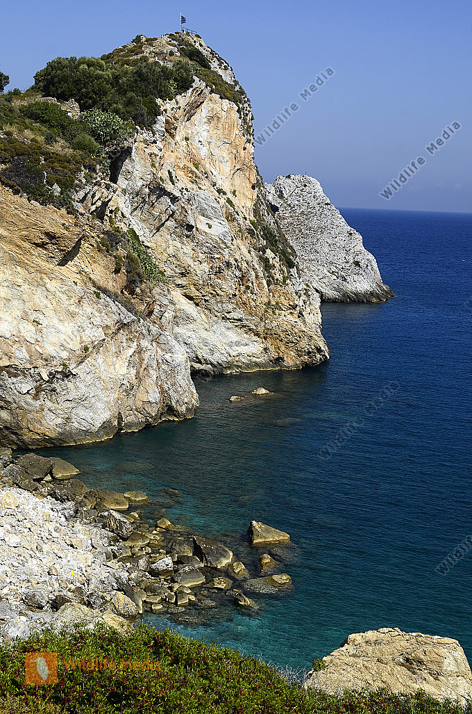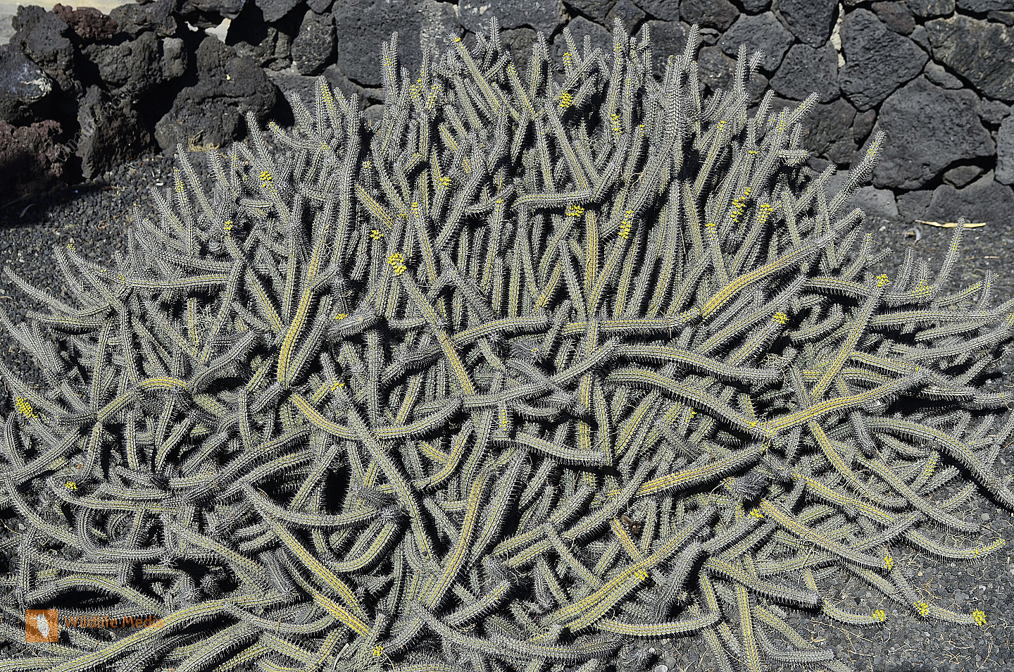 Ein Grünadler-Weißling sitzt auf vertrocknetem Gesträuch