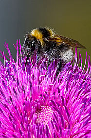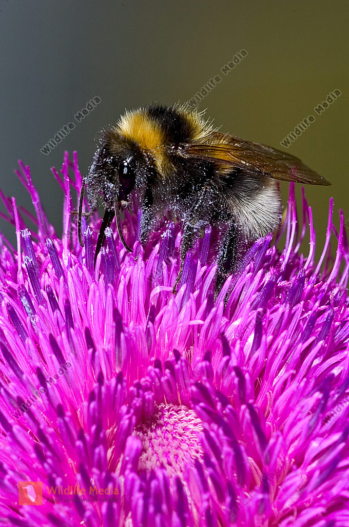 Ein kleines Wiesenvögelchen saugt an einer Blüte