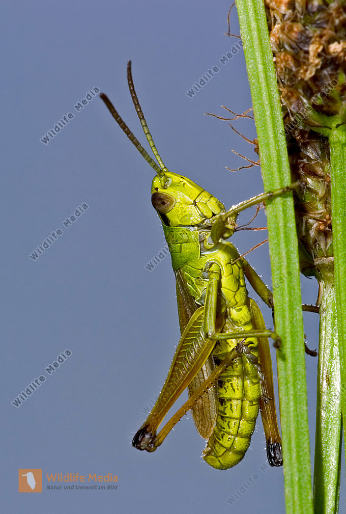 Kleines Wiesenvögelchen sitzt auf einem Grashalm