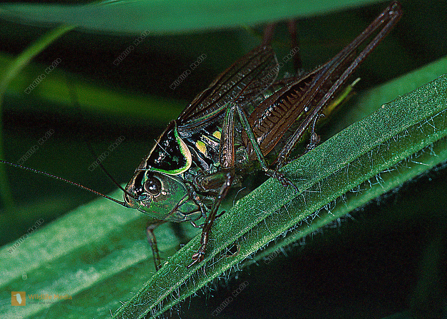 Ein Weißbindiges Wiesenvögelchen in der Seitenansicht