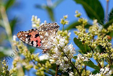 Kleiner Perlmuttfalter sitzt auf weißer Blüte