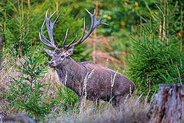 Alter Rothirsch Cervus elaphus an der Wildfütterung