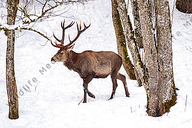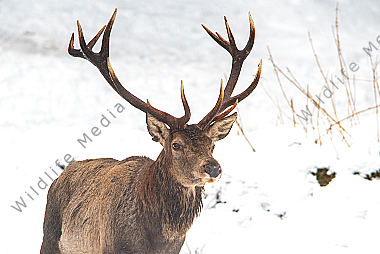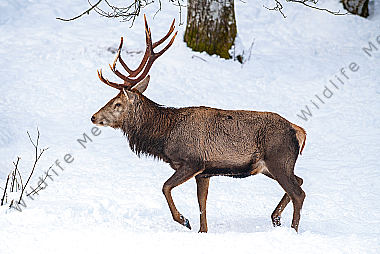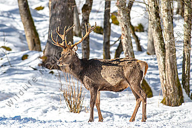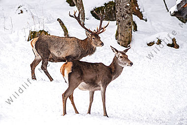 Weiblicher Rothirsch Cervus elaphus im Winter