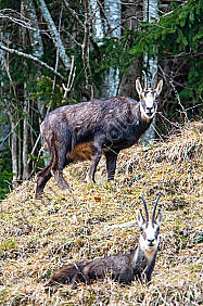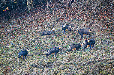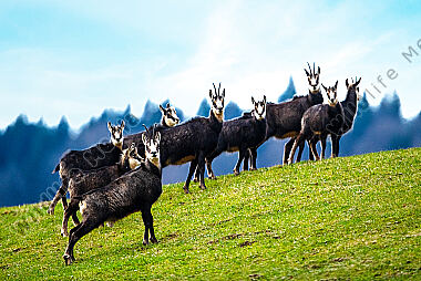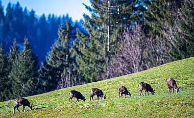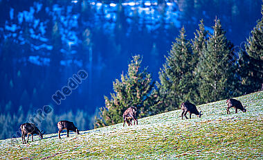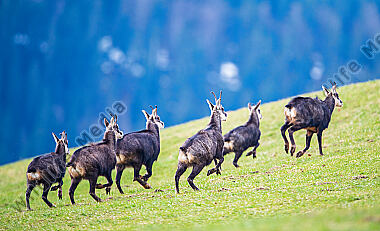 Gämsen Rupicapra rupicapra iauf der Flucht