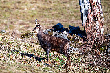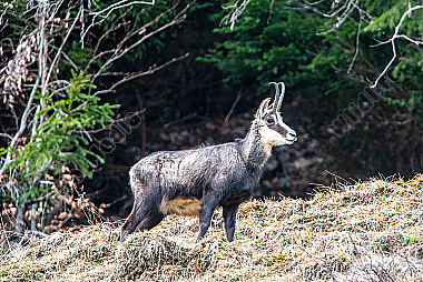 Sichernder Gamsboch Rupicapra rupicabra im Frühling