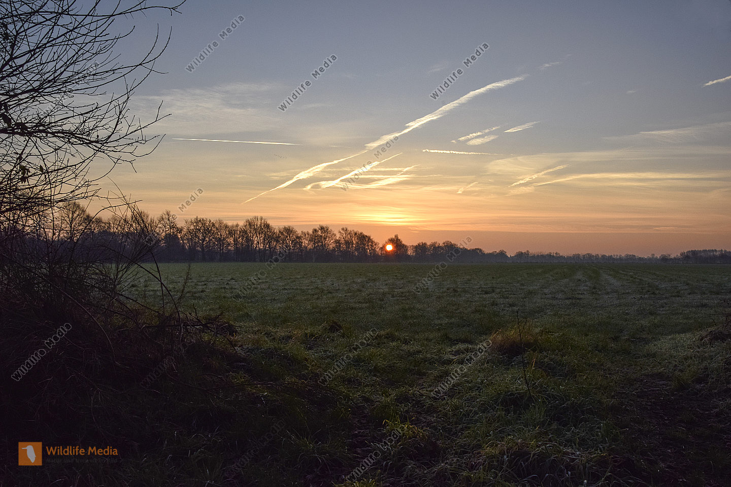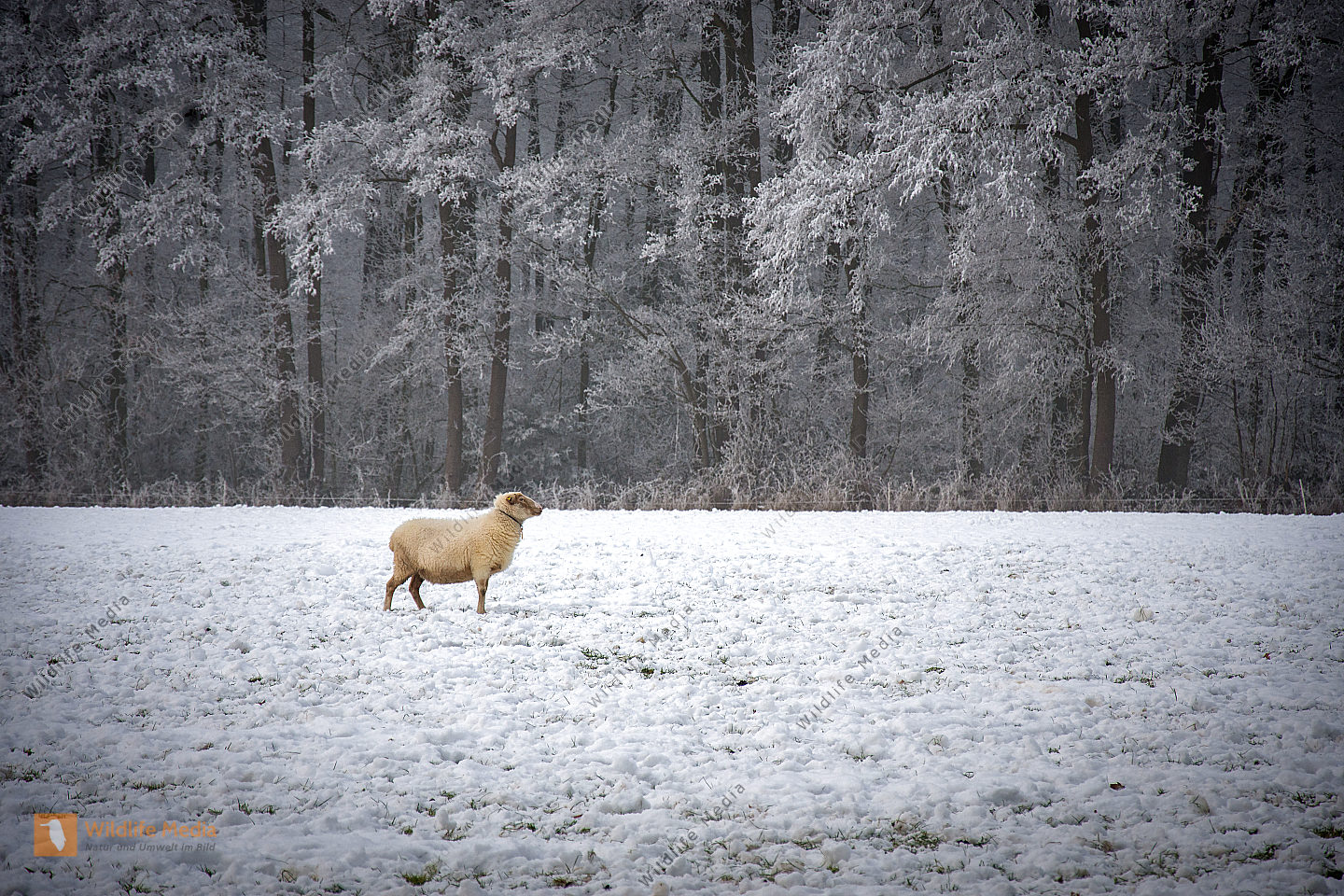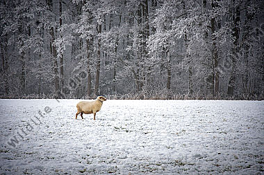 Eine Rotdrossel auf winterlicher Wiese