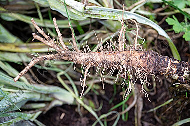 Kakaofrucht aufgeschnitten mit Kakaobohnen