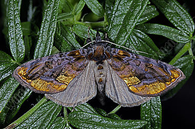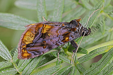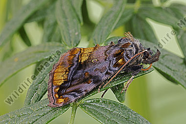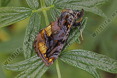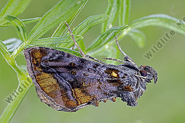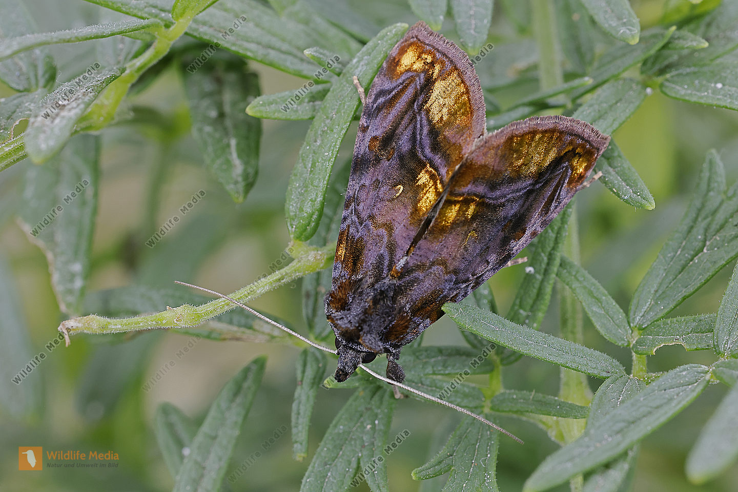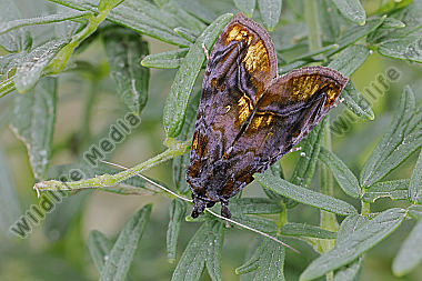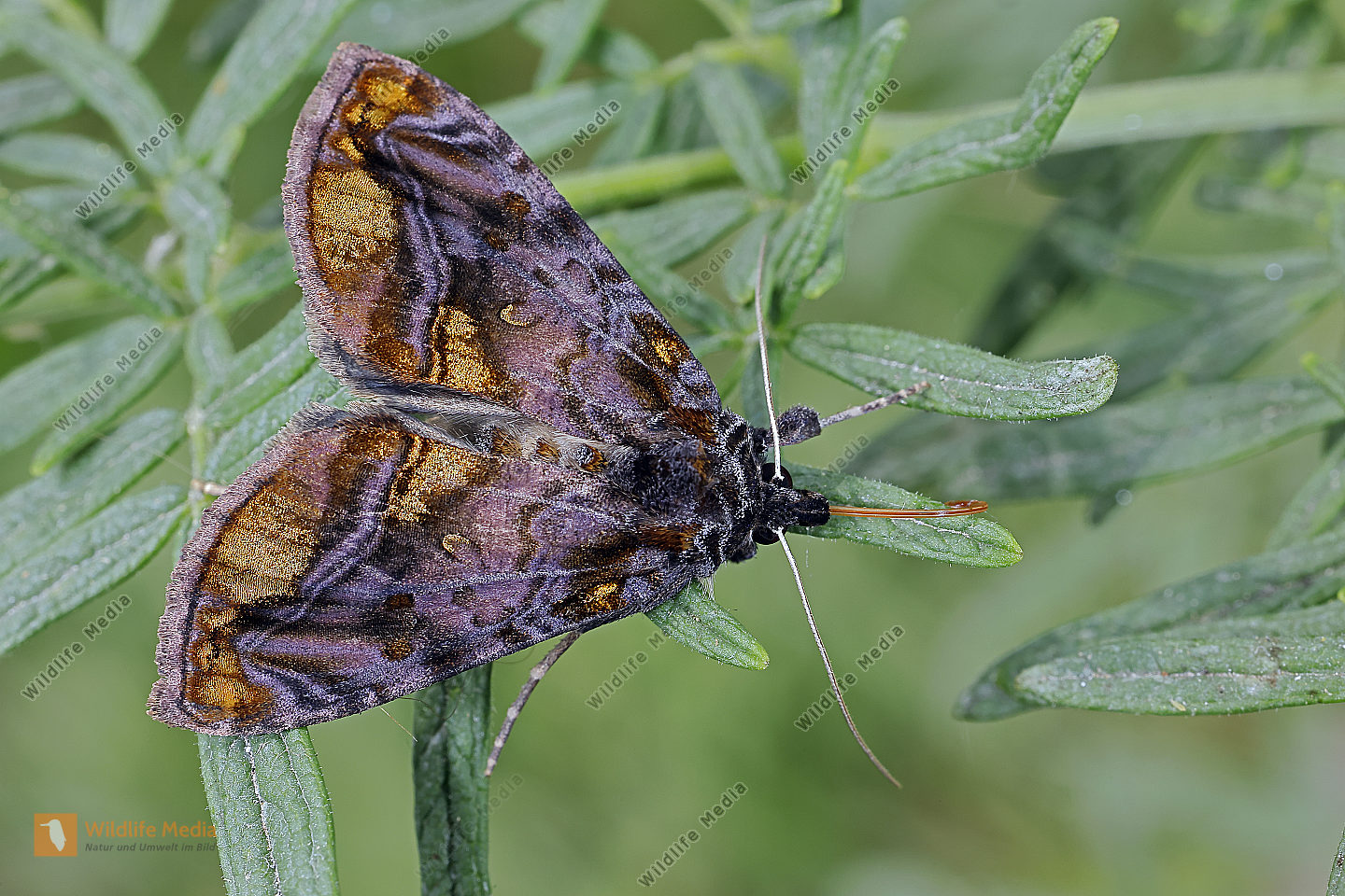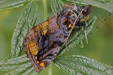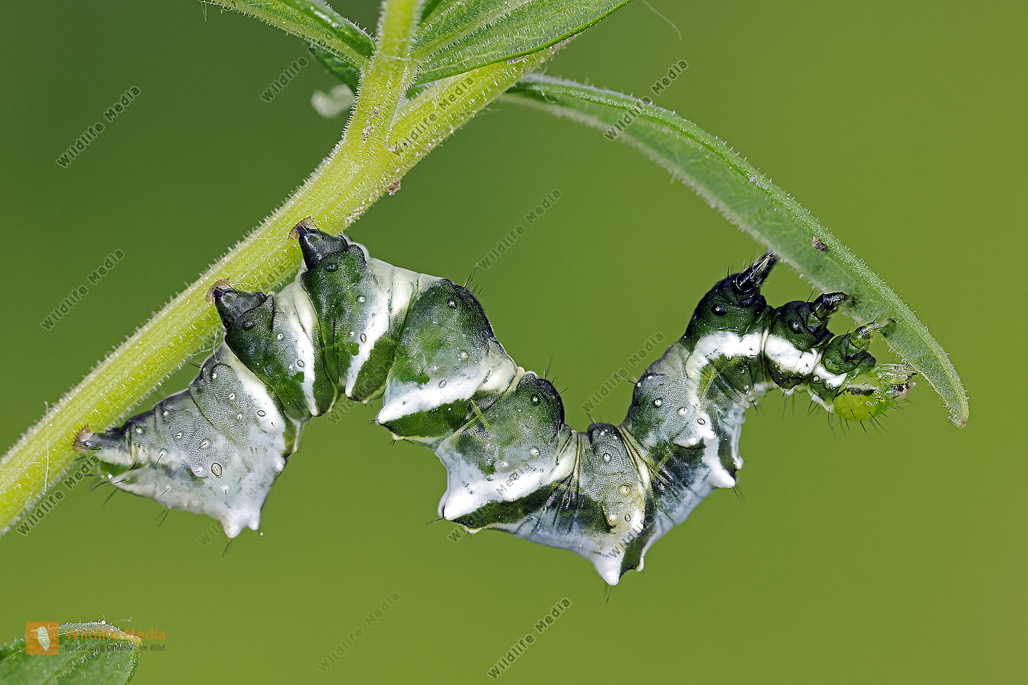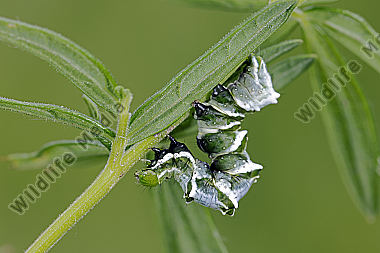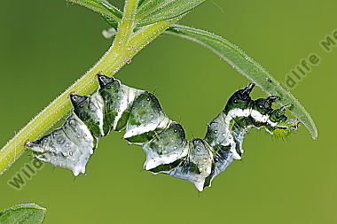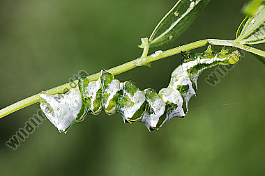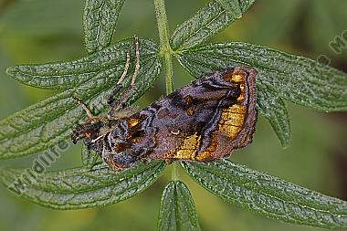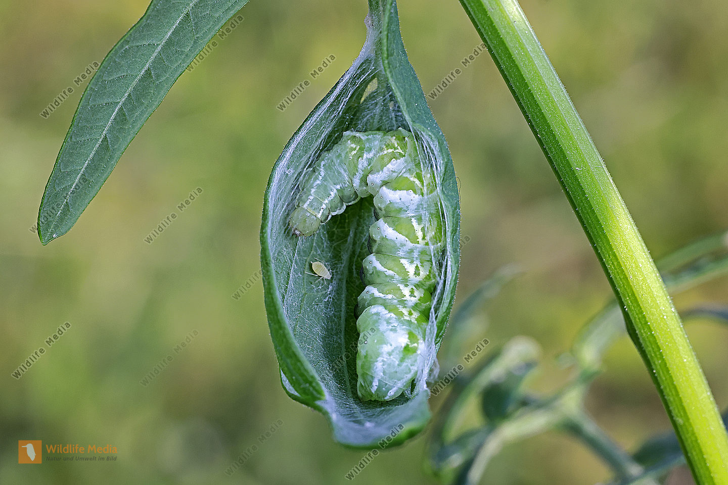 Wiesenrauten-Goldeule Raupe beim Kokonbau