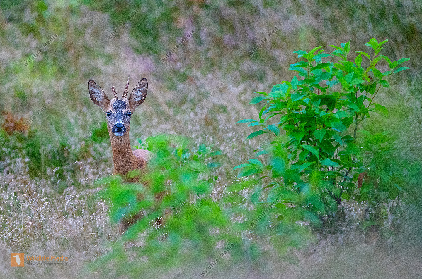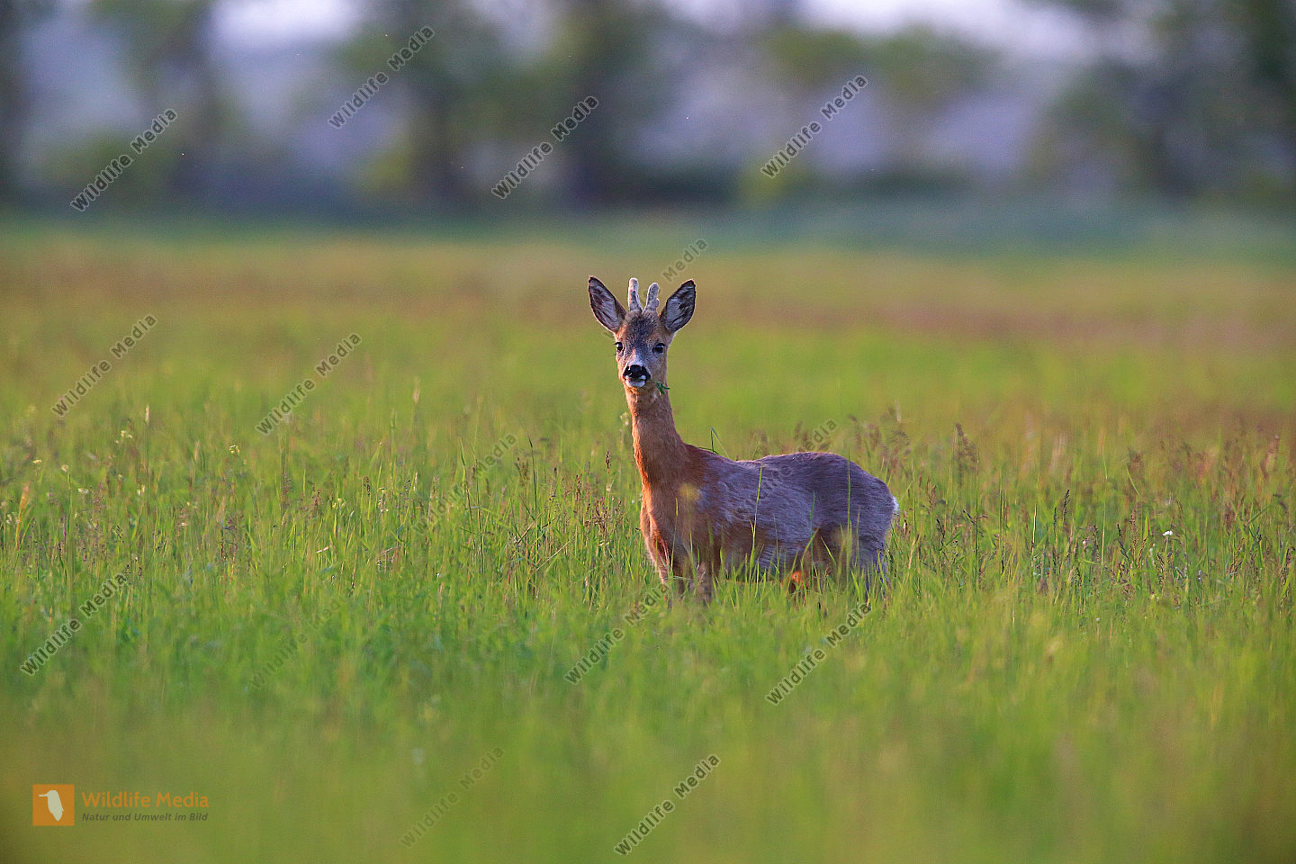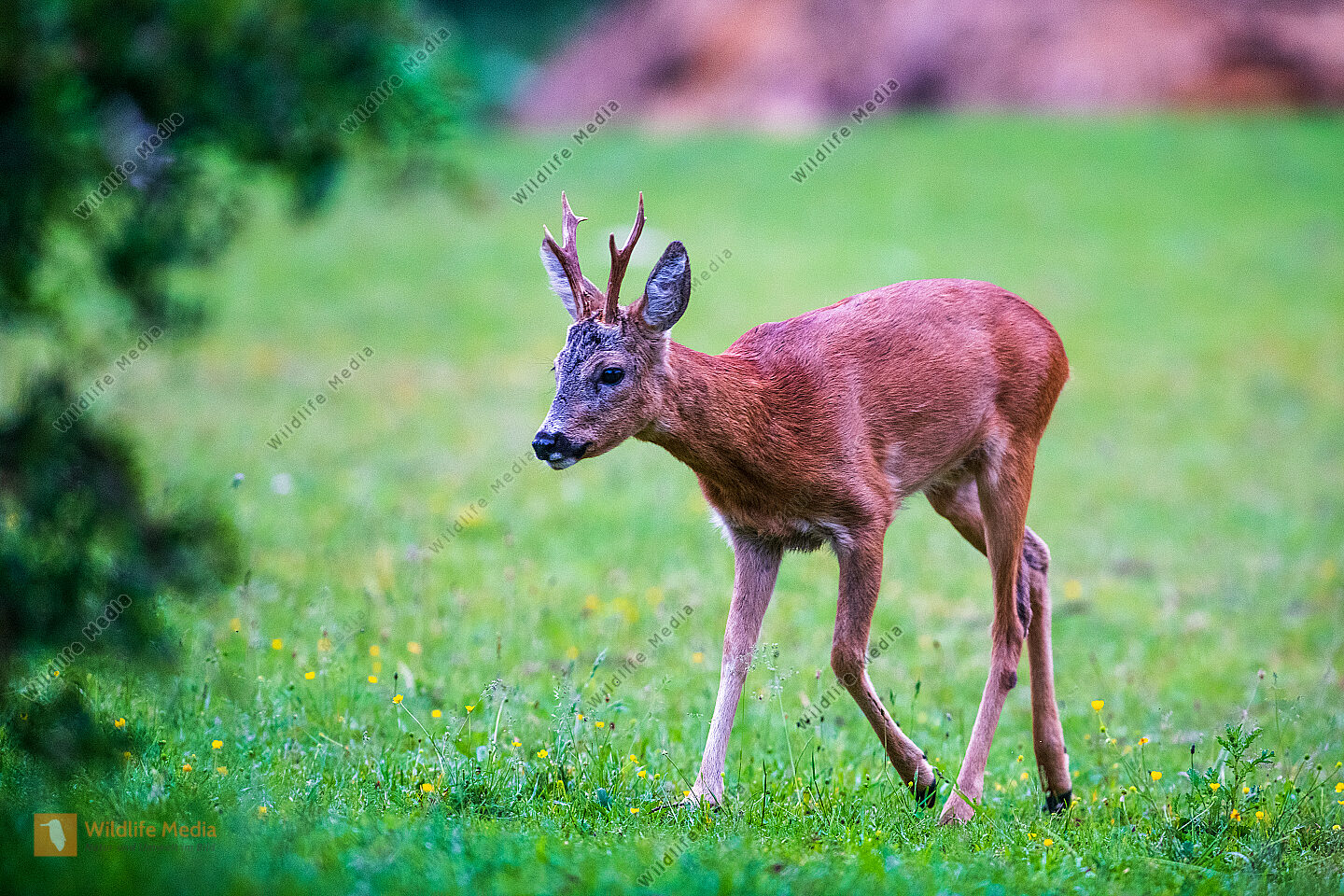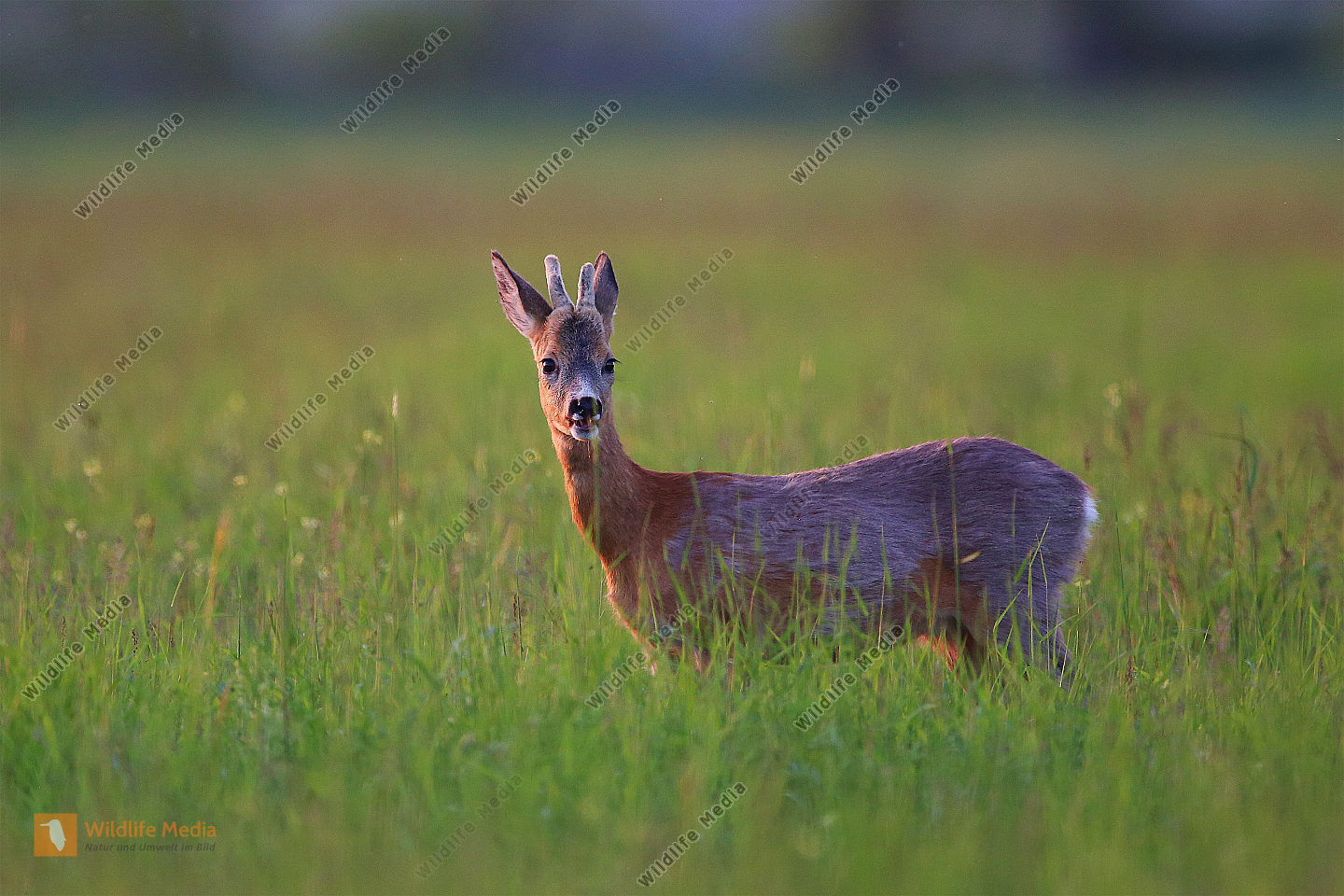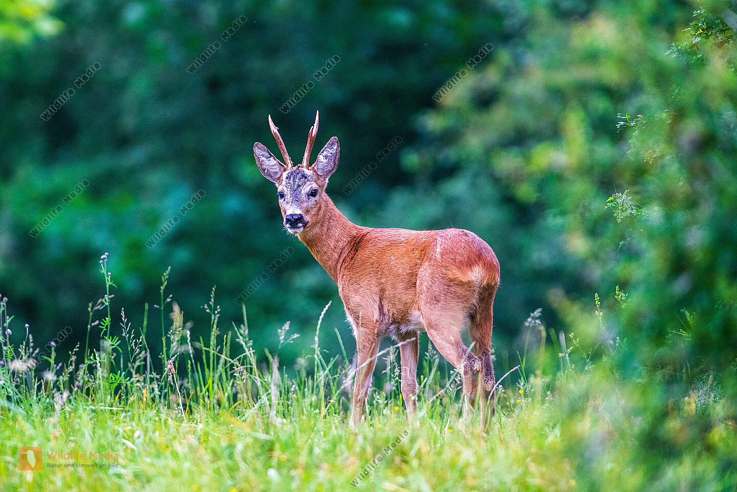 Rehbock Capreolus capreolus auf einer blühenden Wiese
