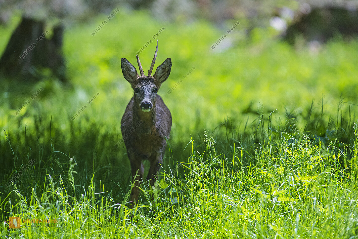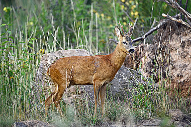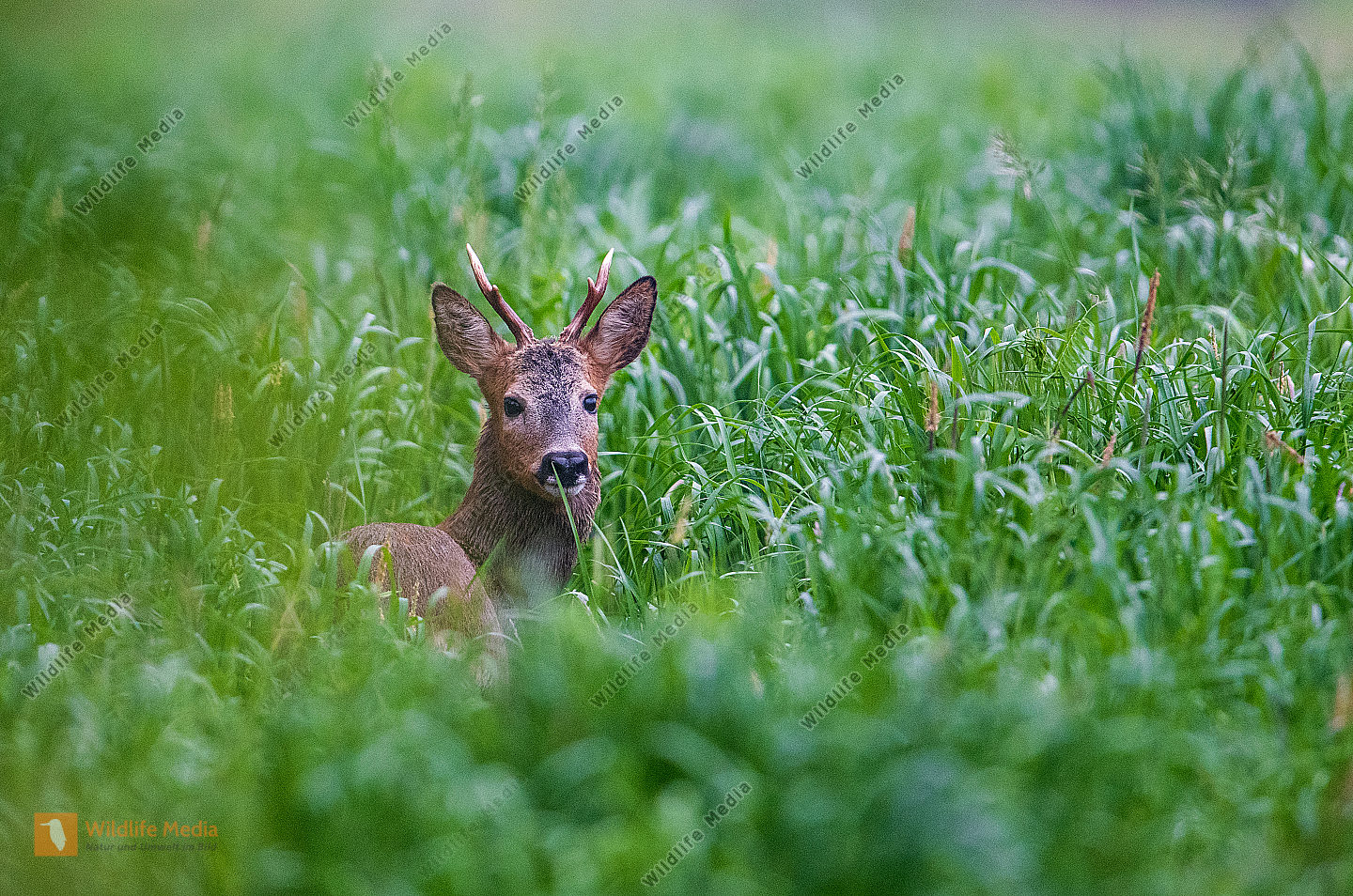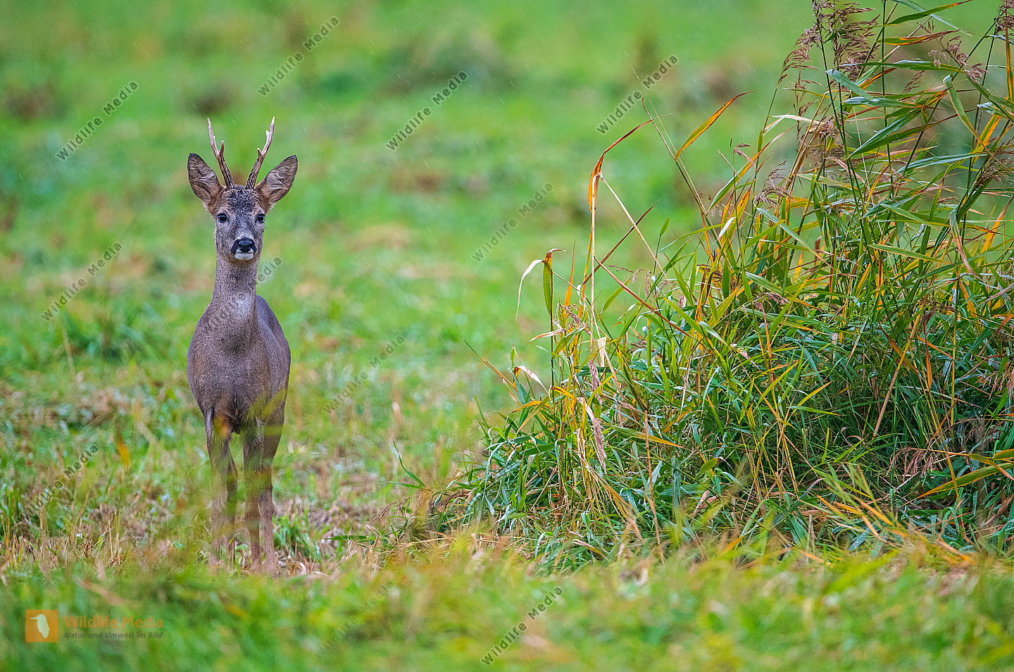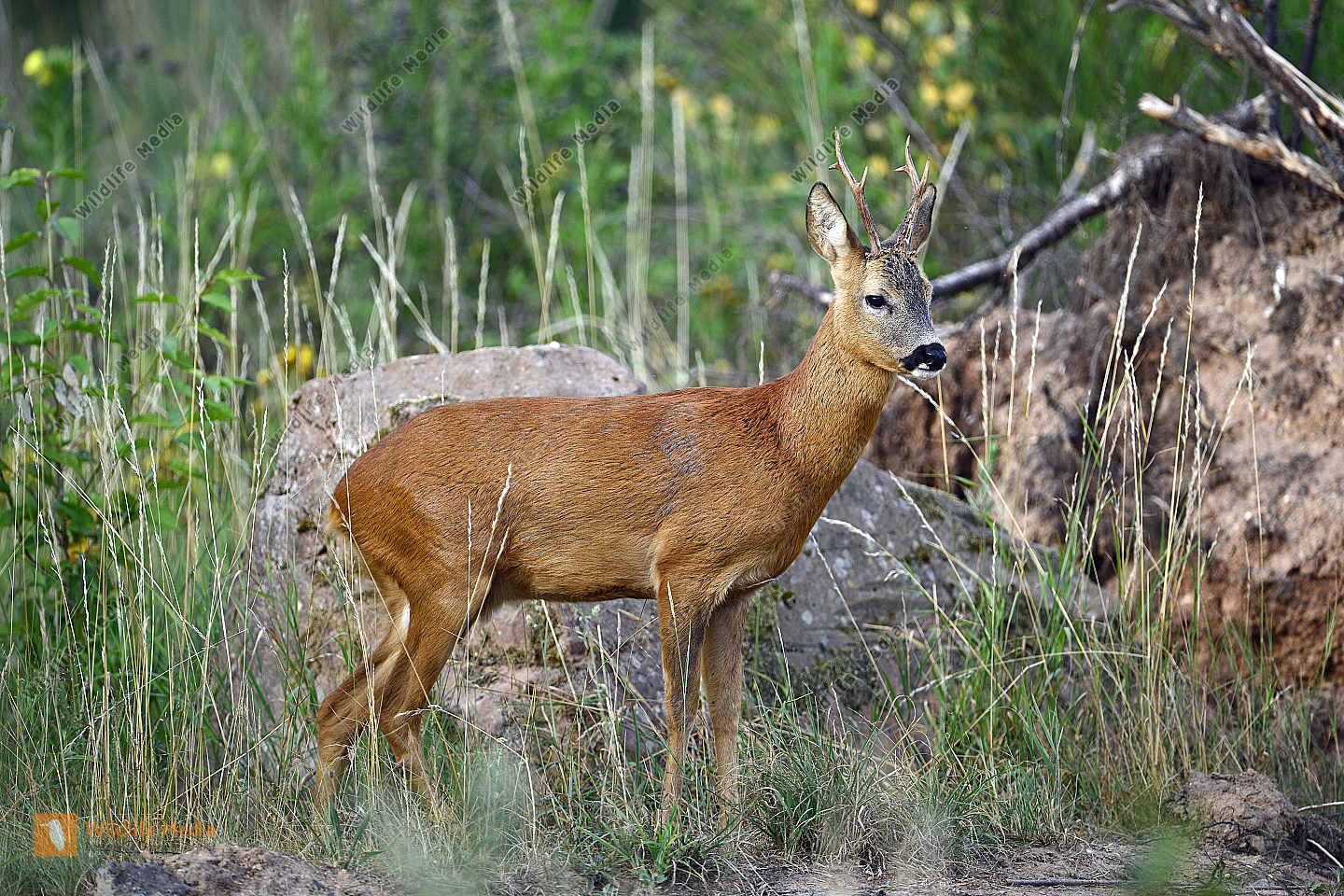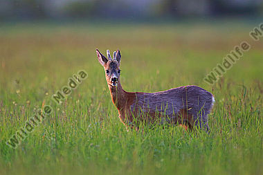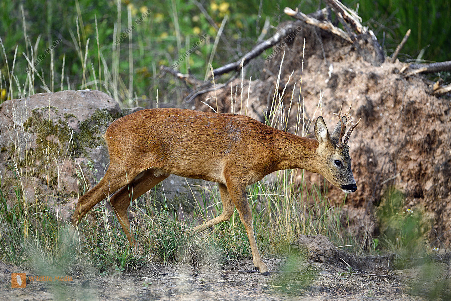 Rehbock Capreolus capreolus auf einer blühenden Wiese