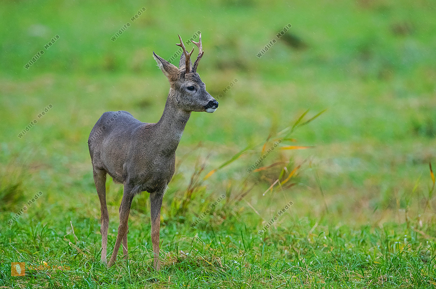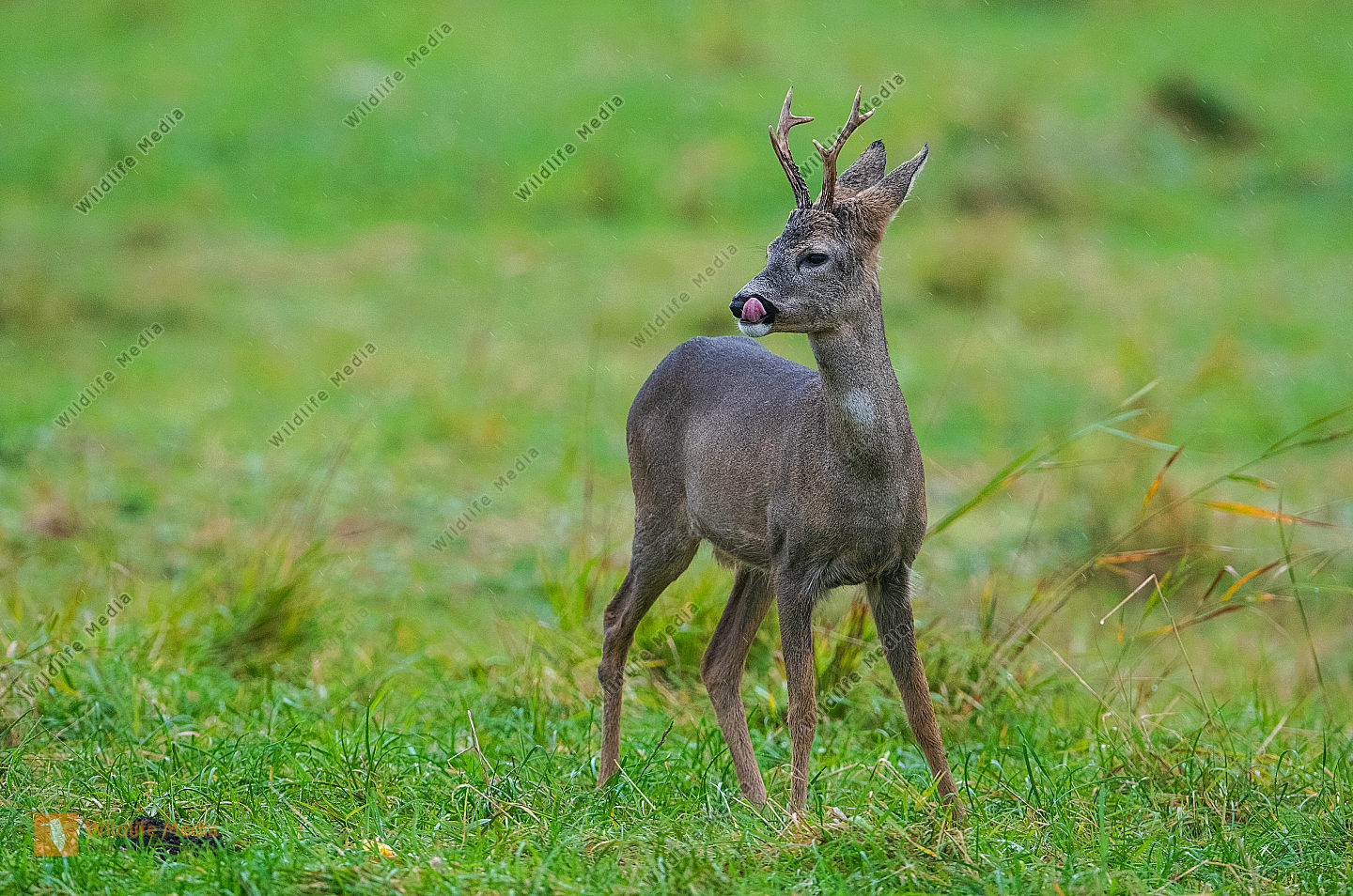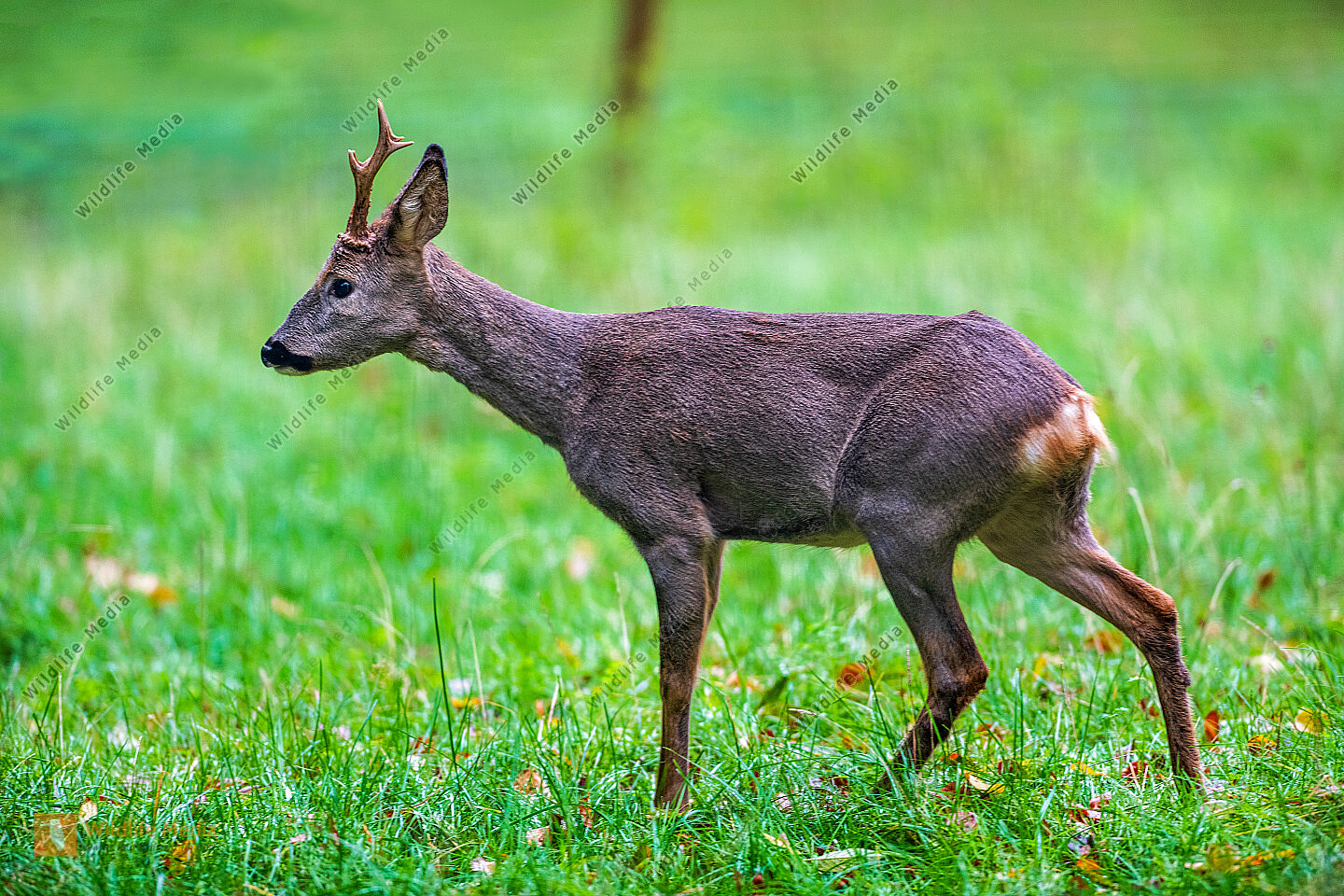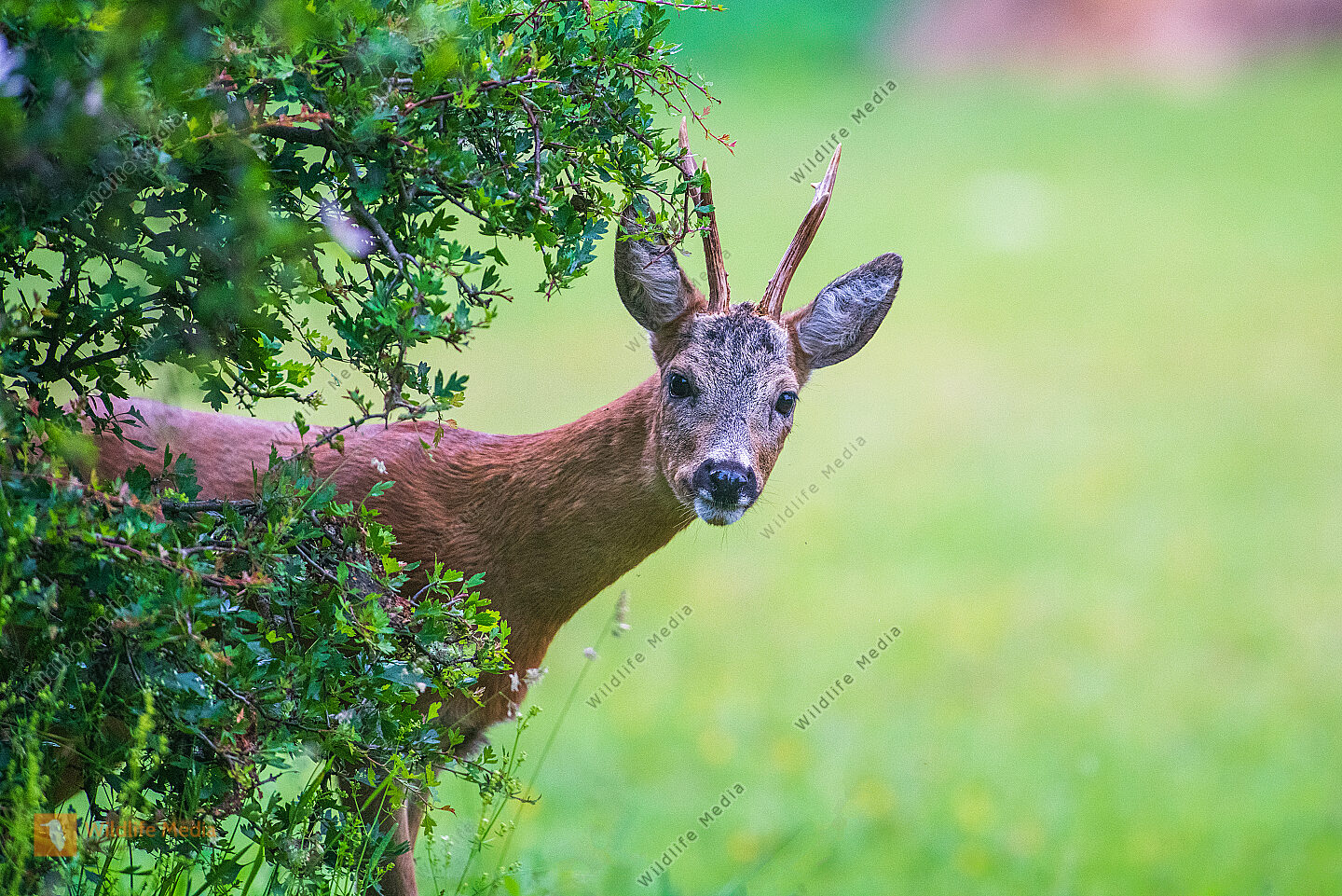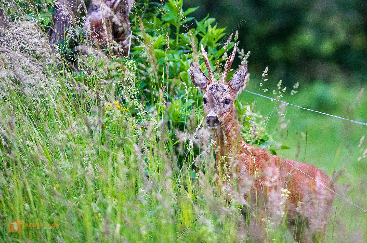 Rehbock Capreolus capreolus auf einer blühenden Wiese