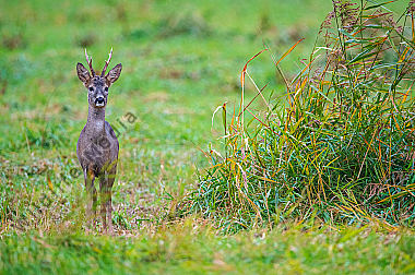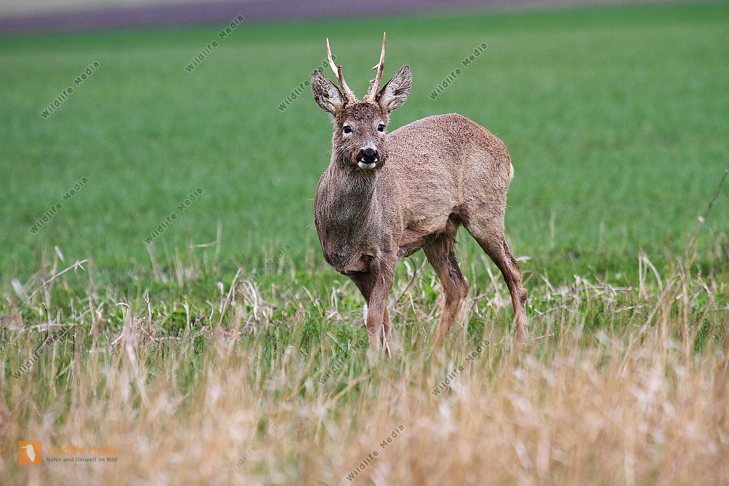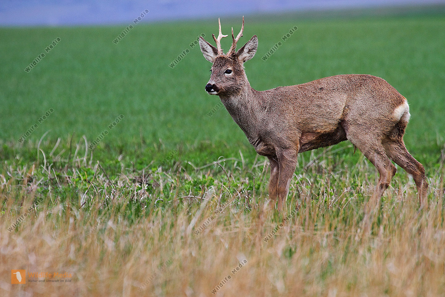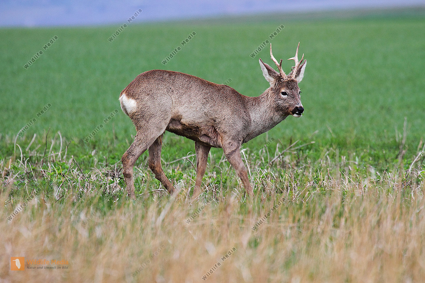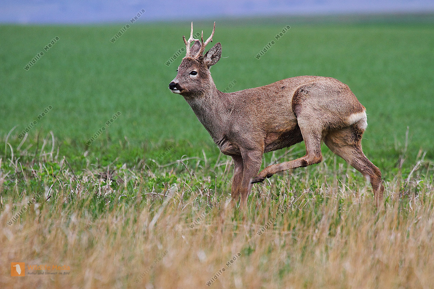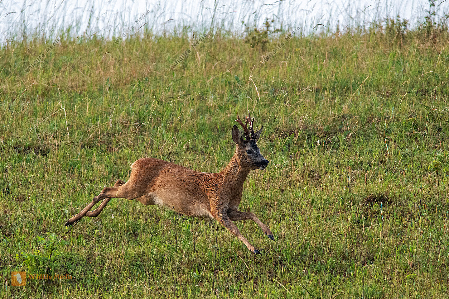 Rehbock Capreolus capreolus auf einer blühenden Wiese
