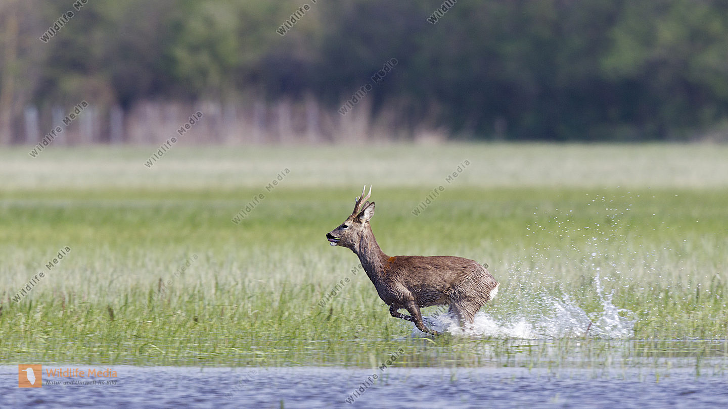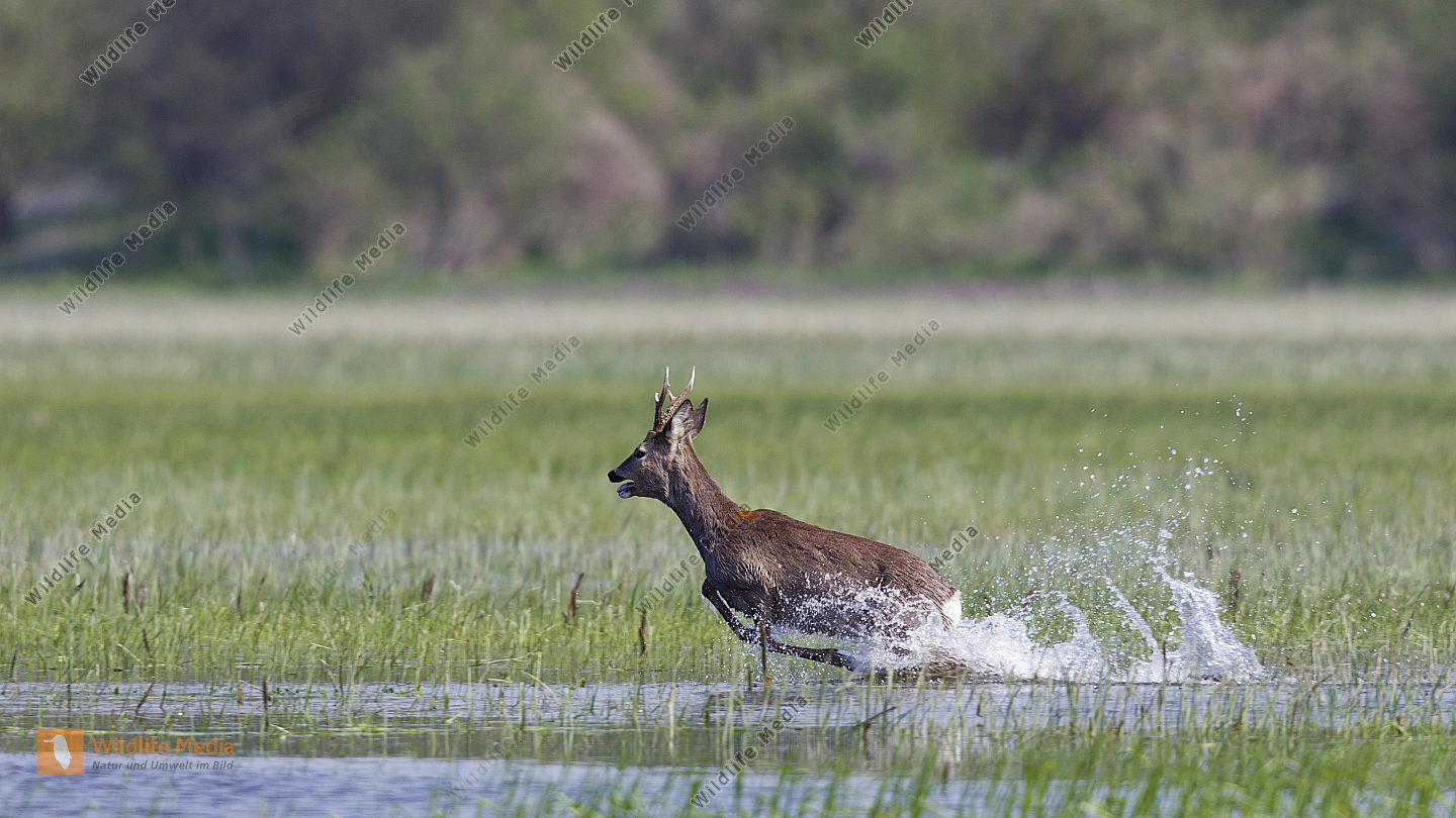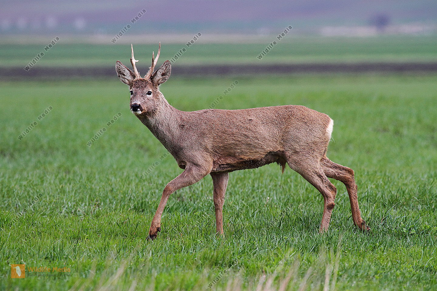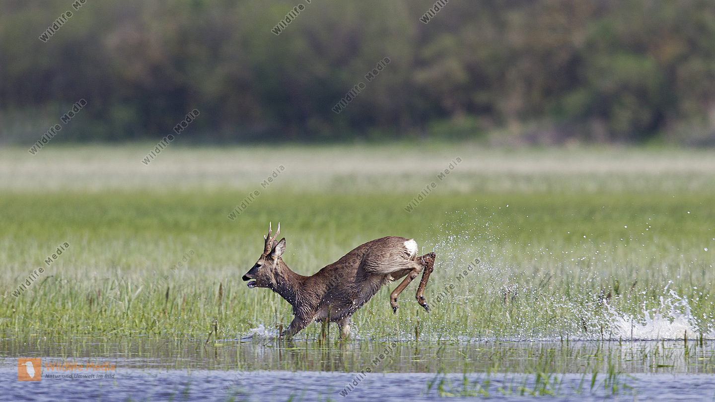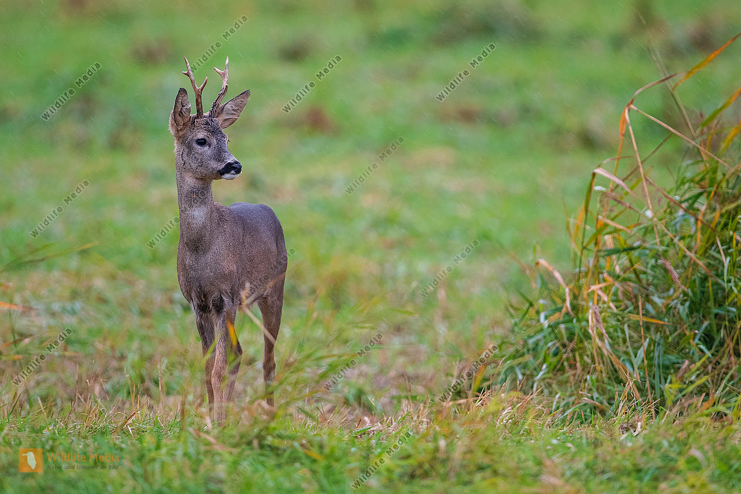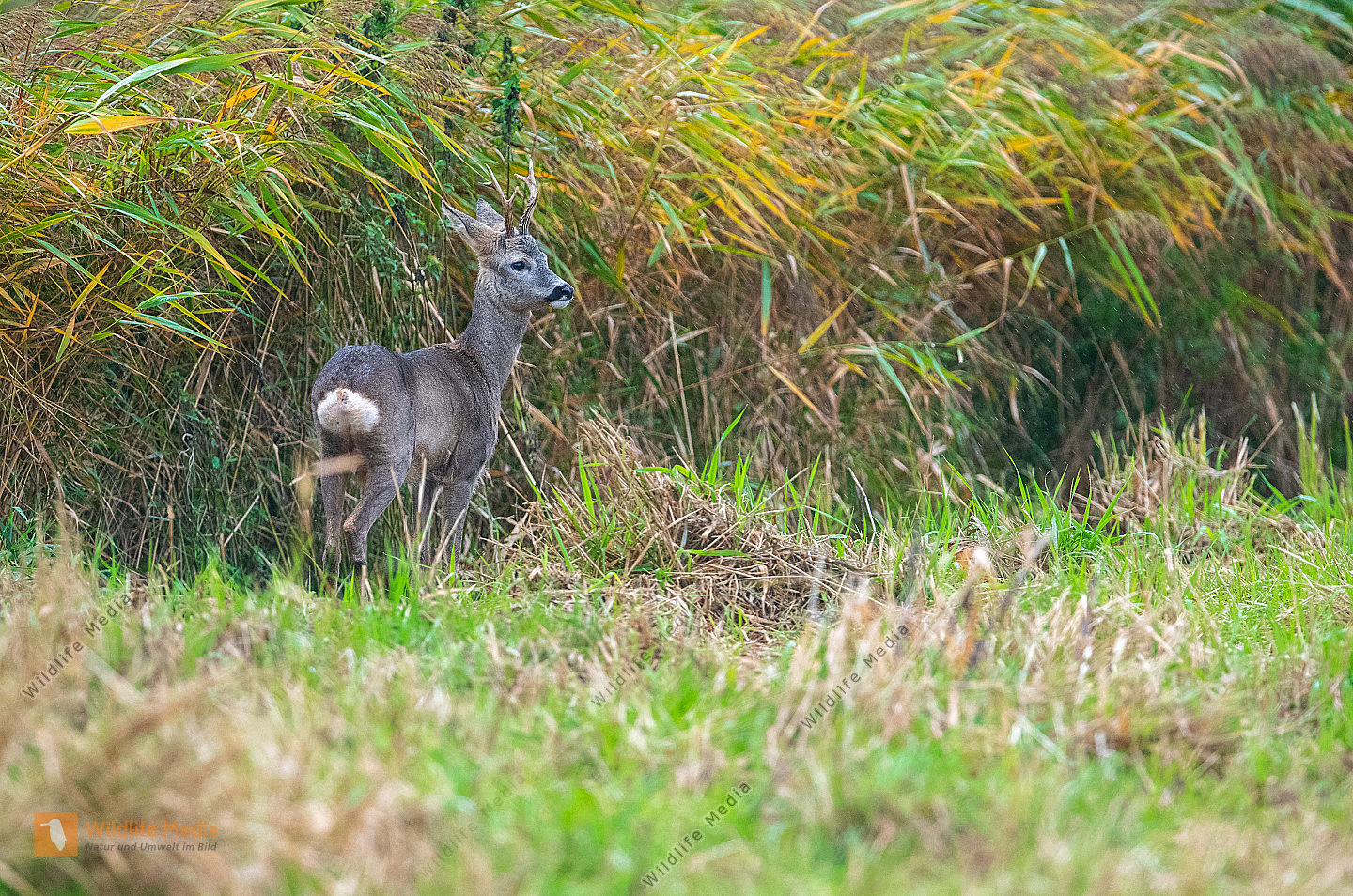 Rehbock Capreolus capreolus auf einer blühenden Wiese