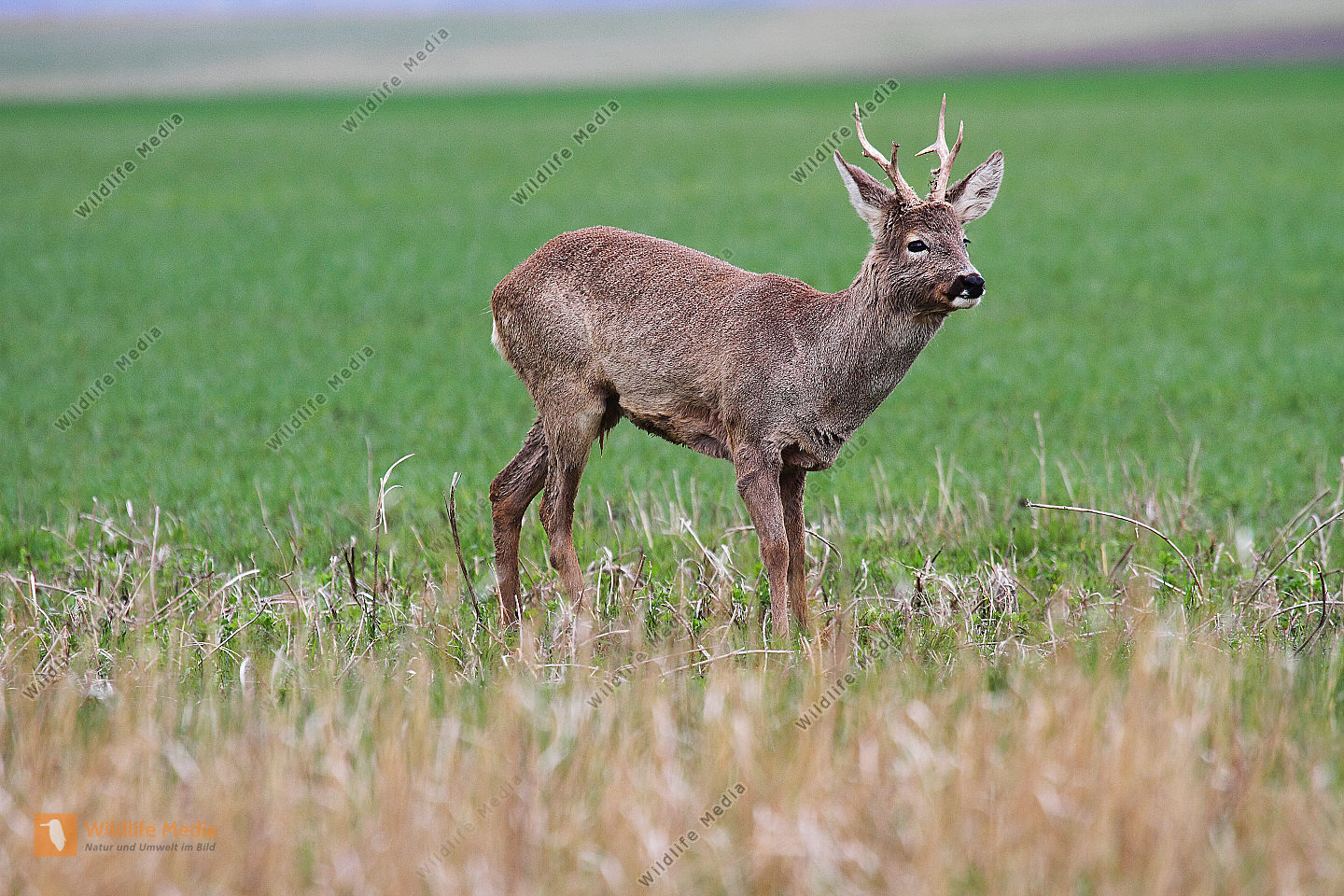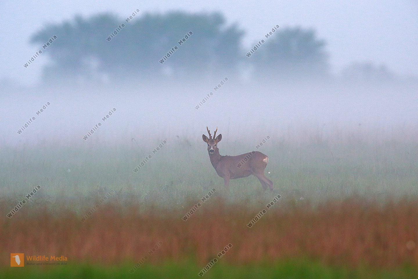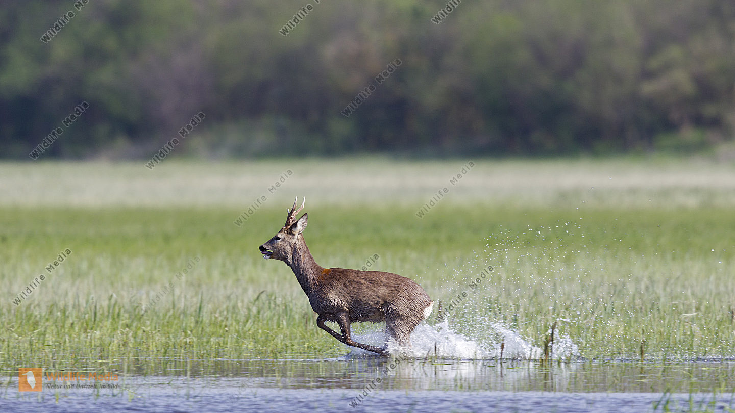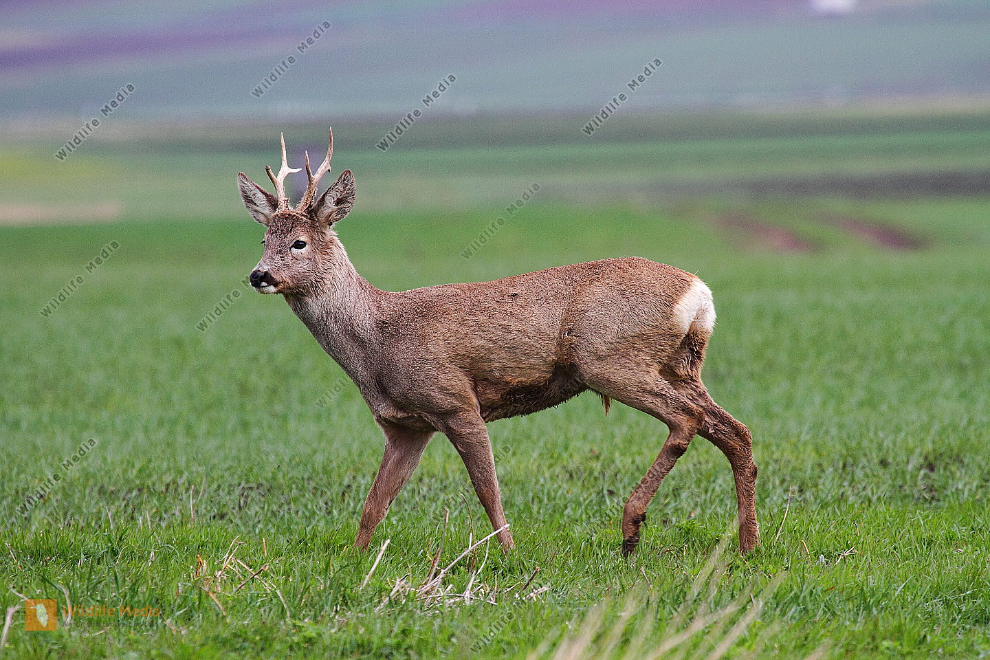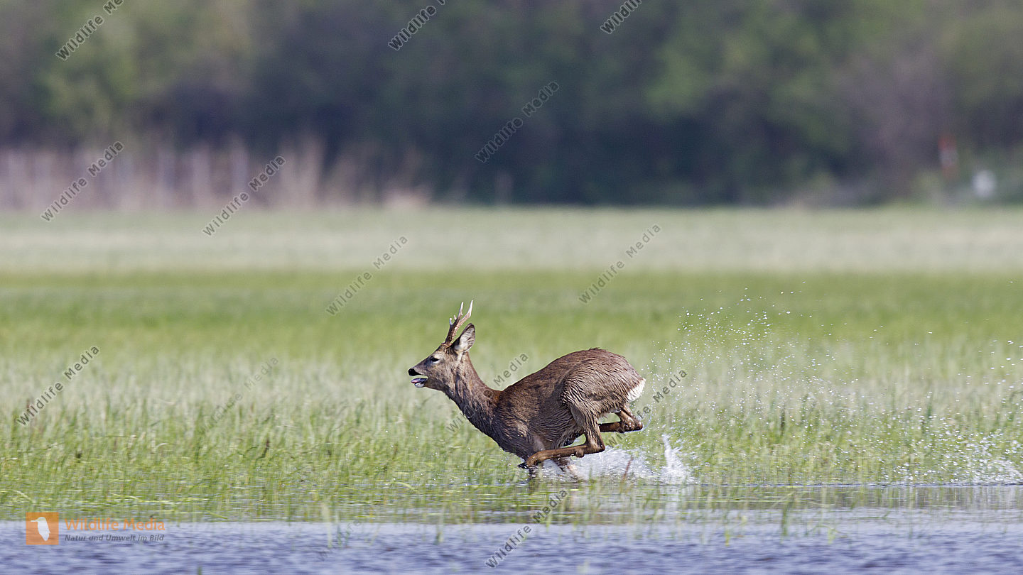Rehbock Capreolus capreolus auf einer blühenden Wiese