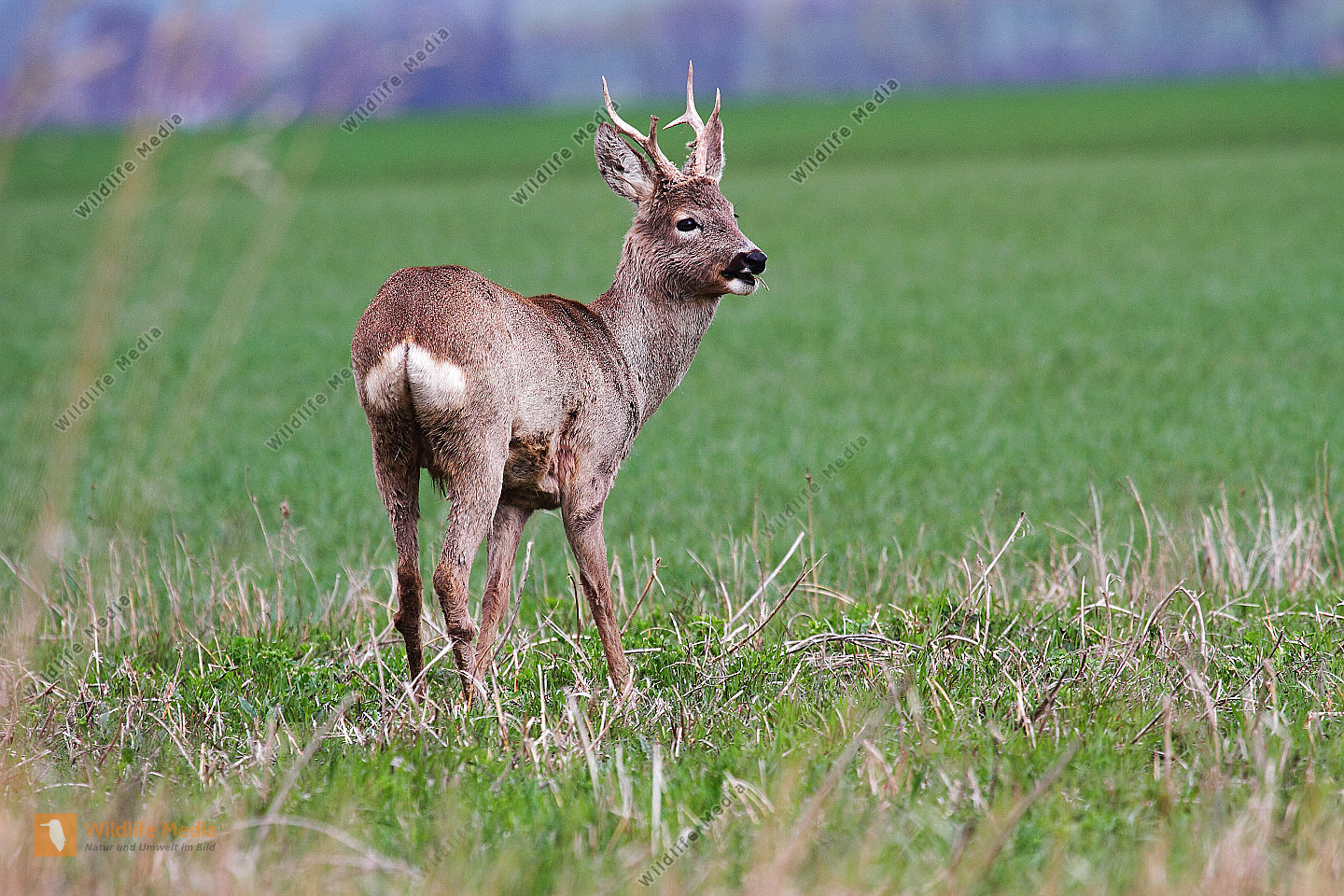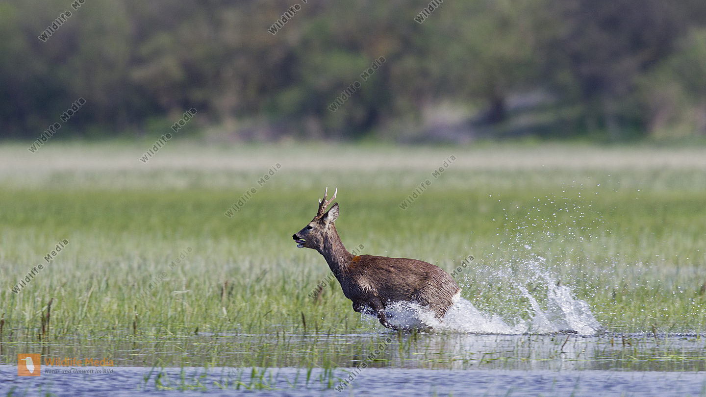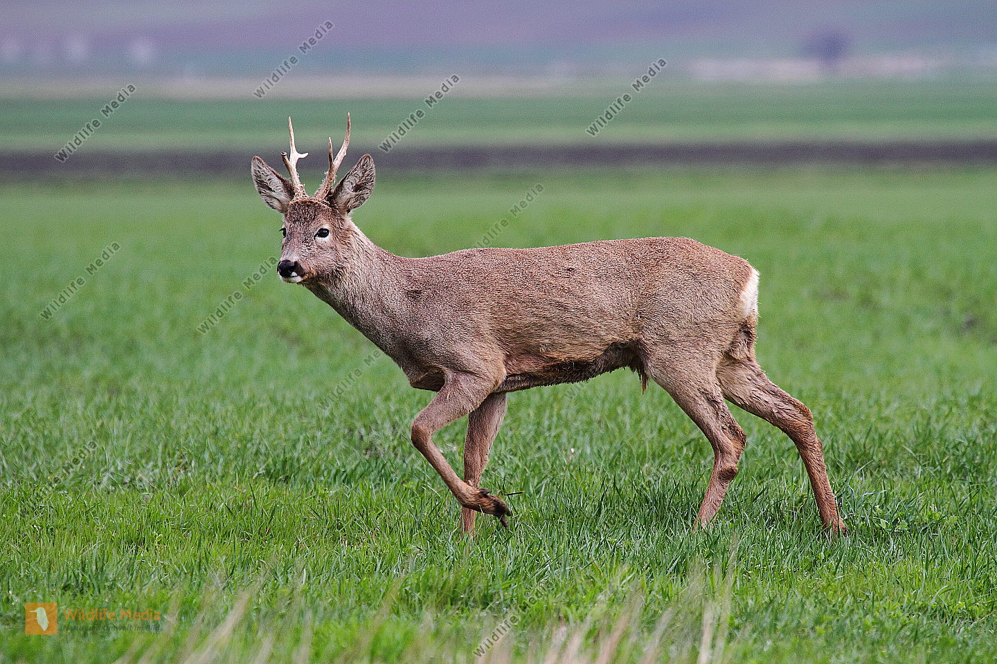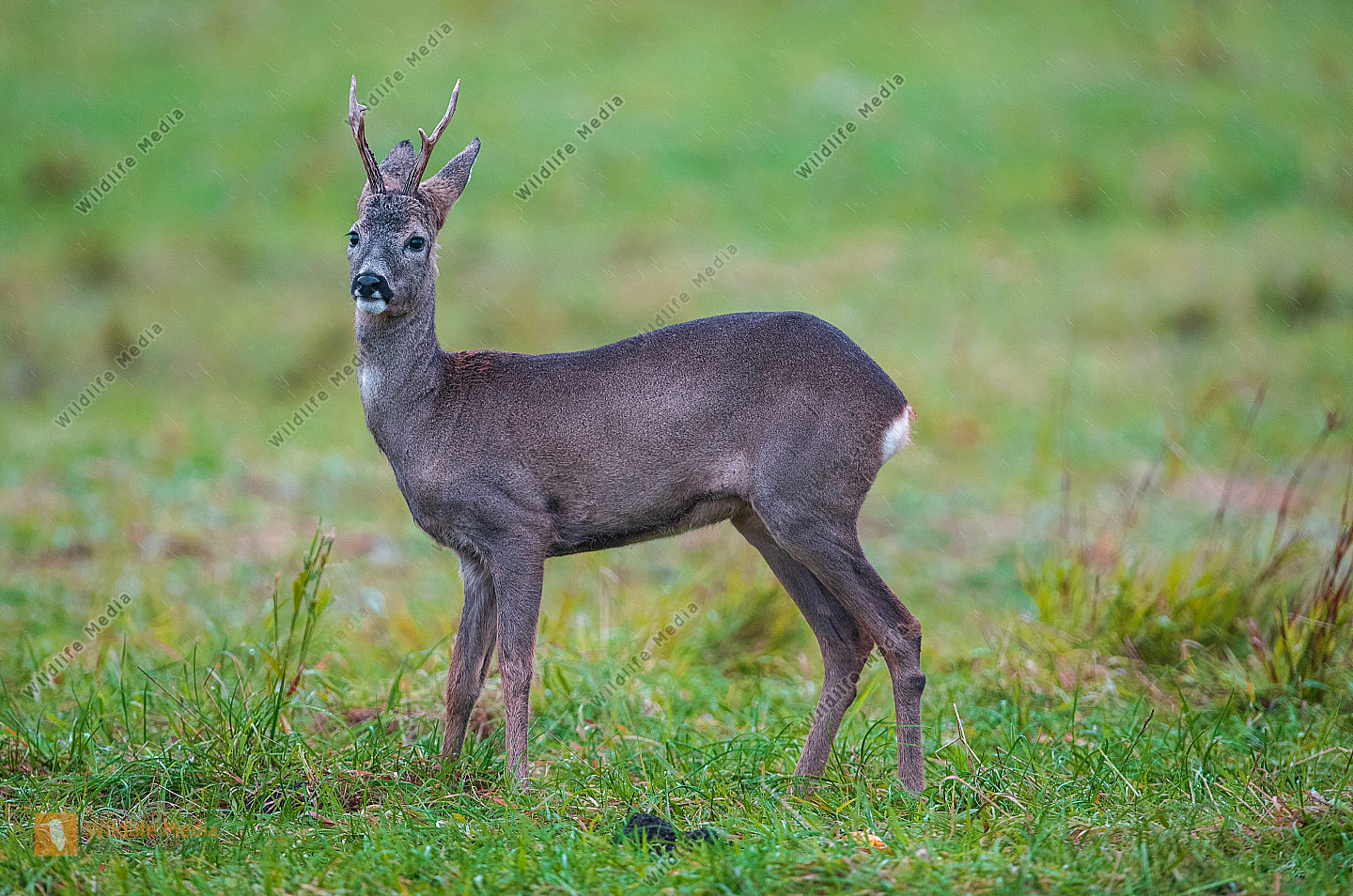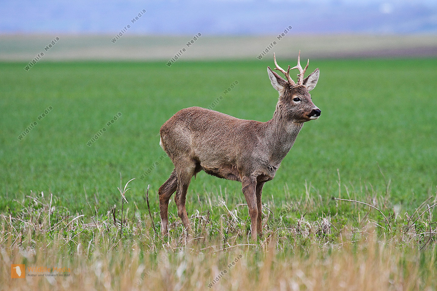 Rehbock Capreolus capreolus auf einer blühenden Wiese