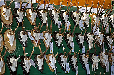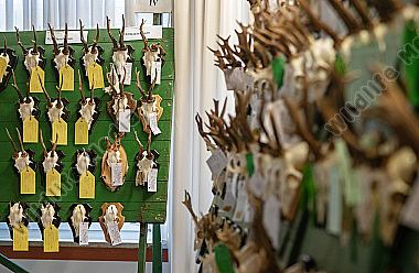 Rehgehörne Capreolus capreolus auf einer Hegeschau