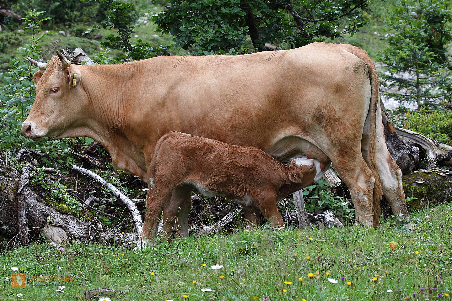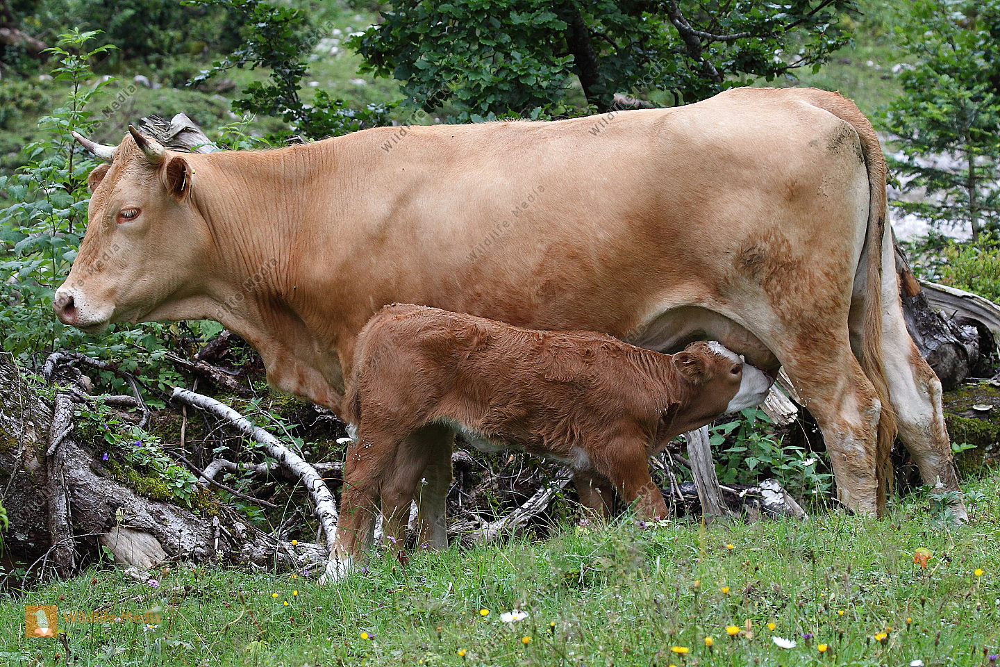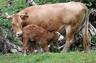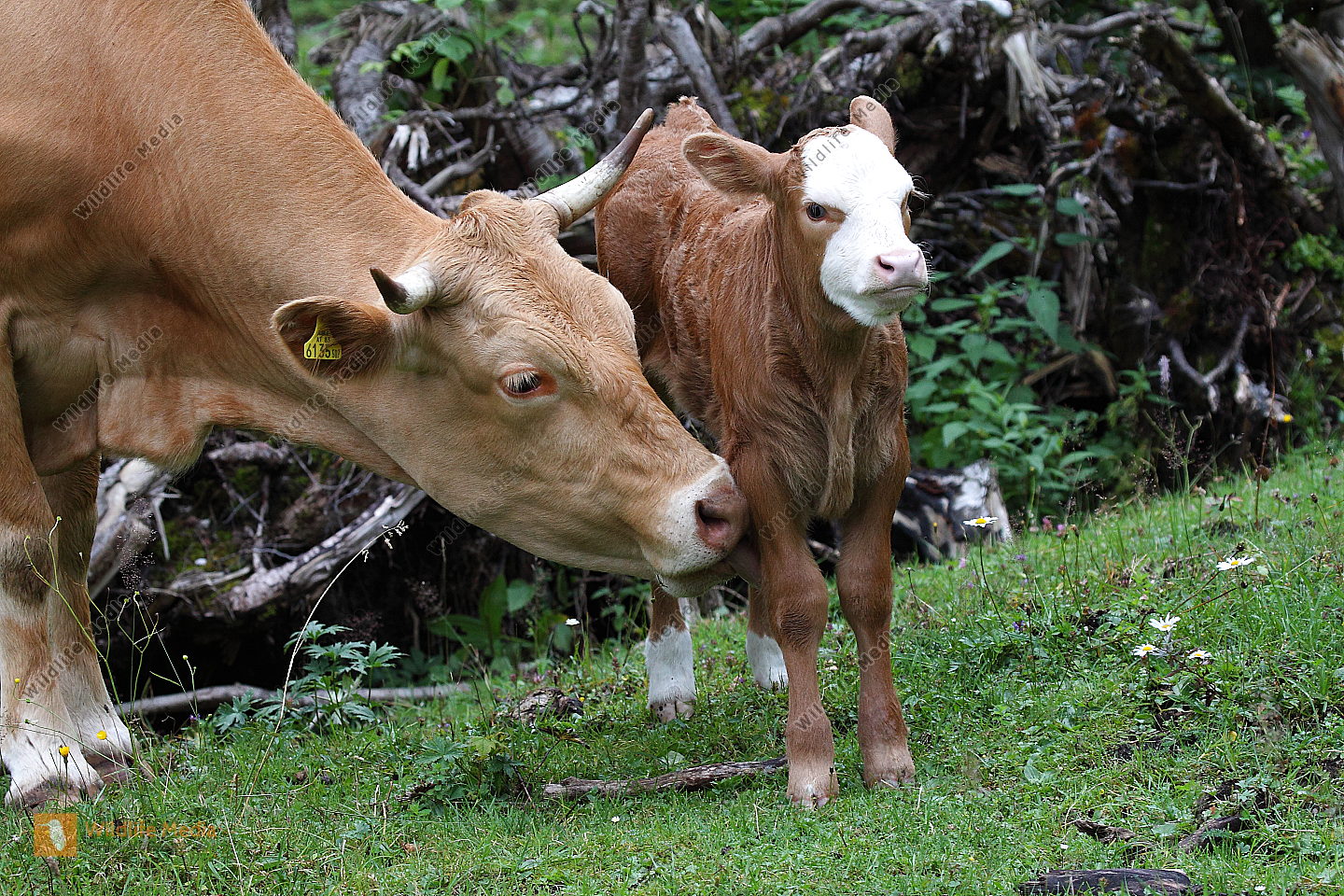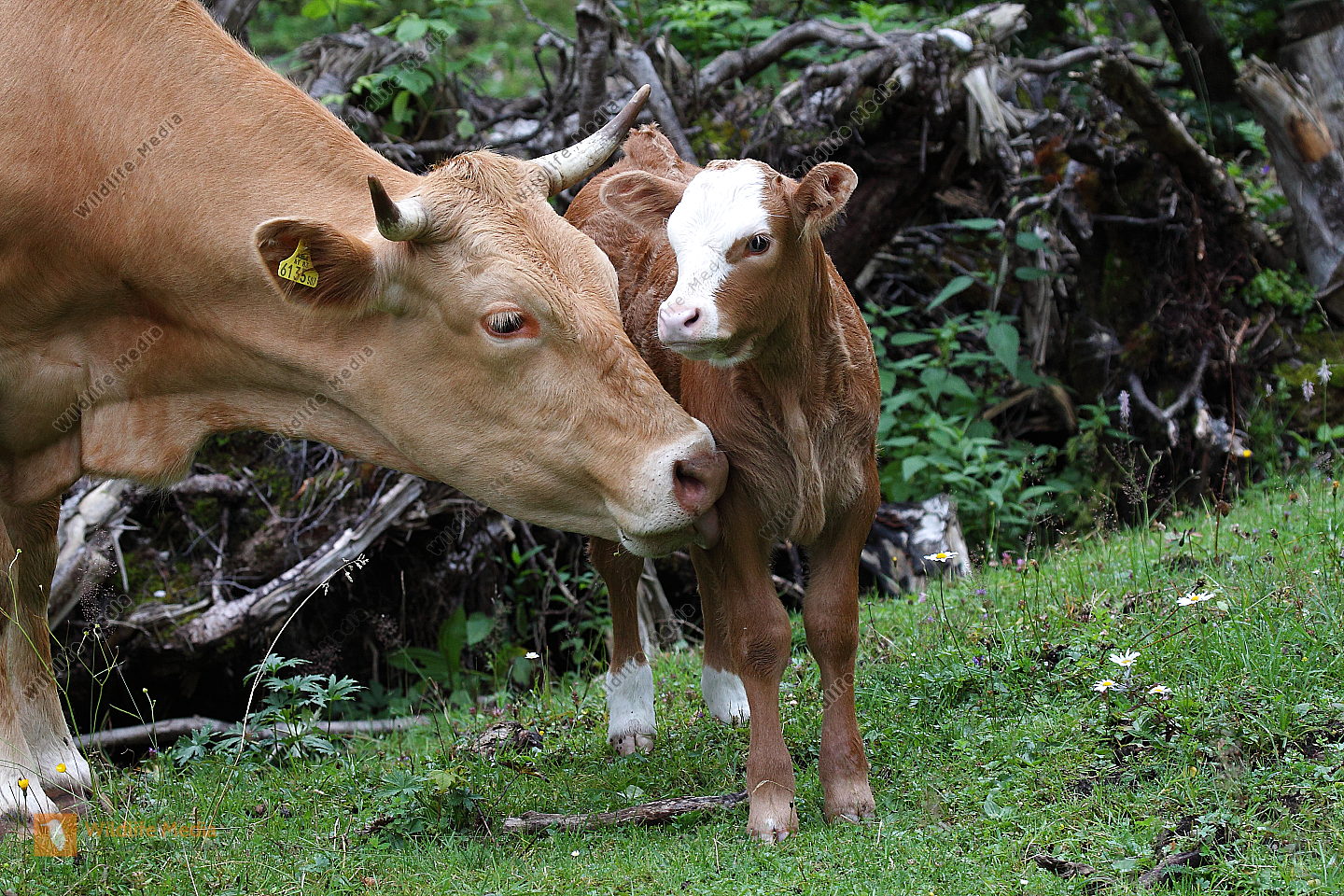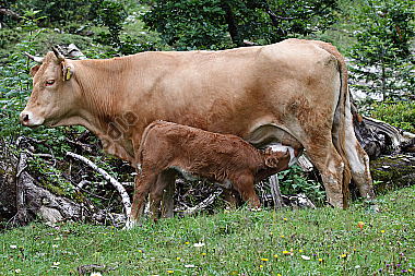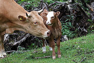 Junges Rind Bovini beim Almabtrieb in Oberstdorf/Allgäu