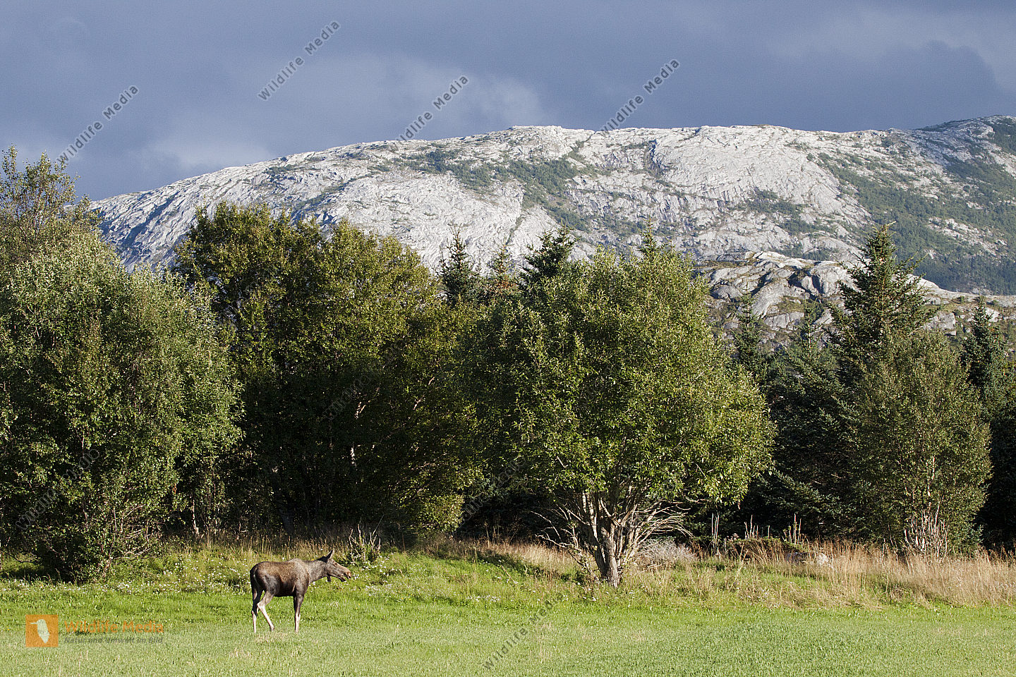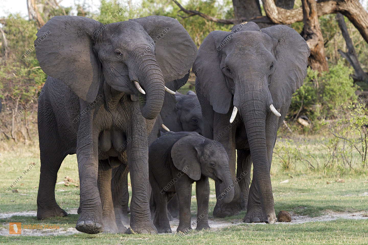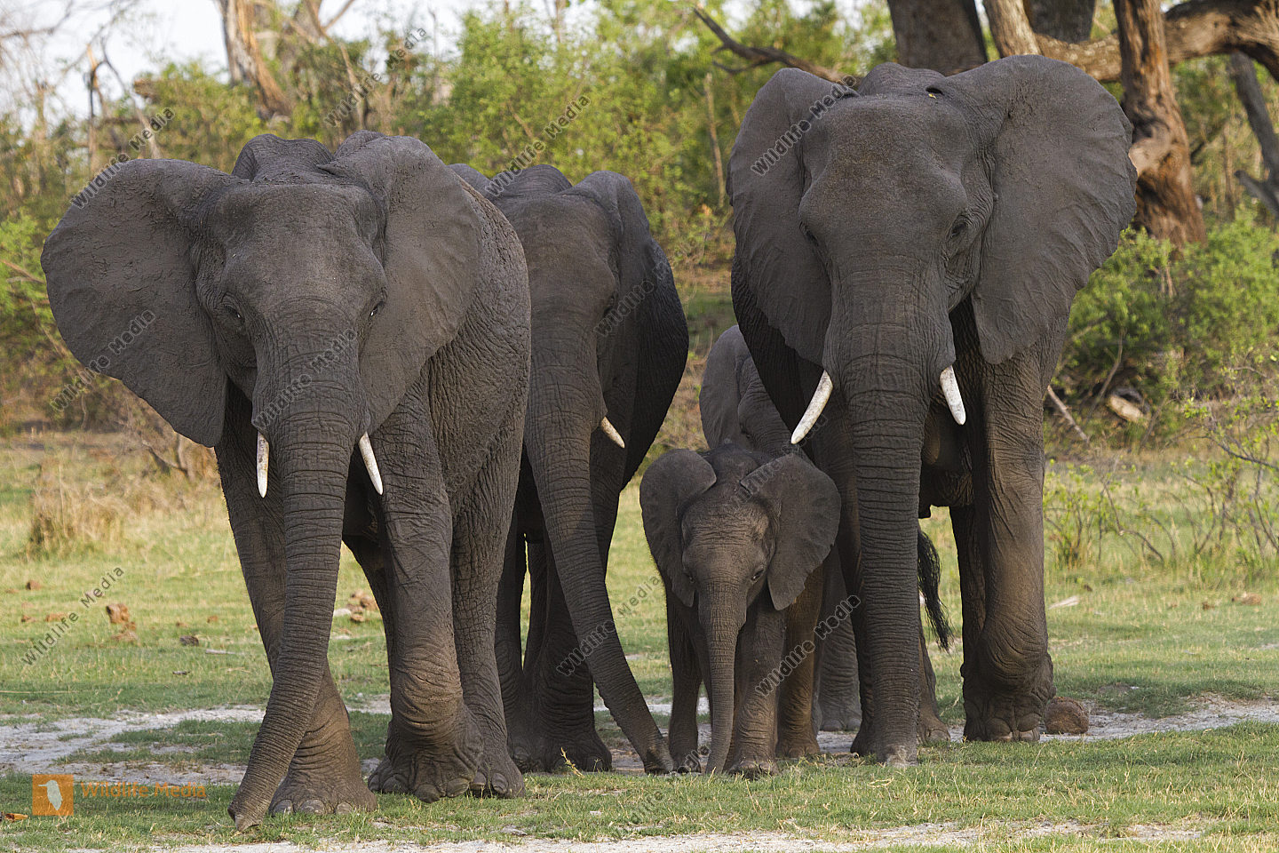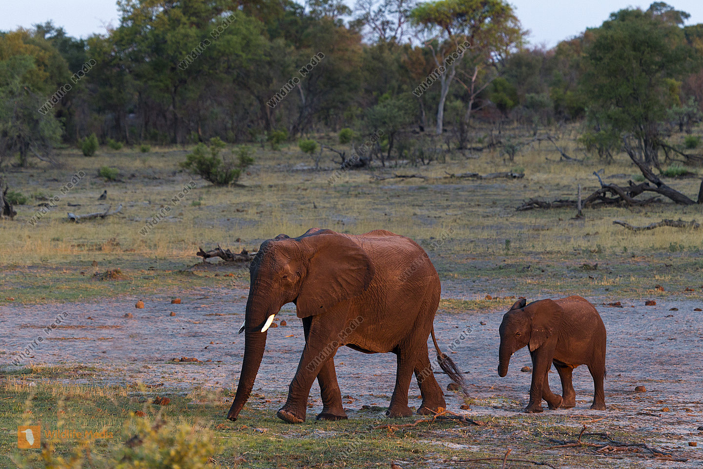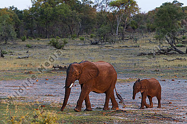 Elefantenkuh ist mit ihrem Jungen im Buschland unterwegs