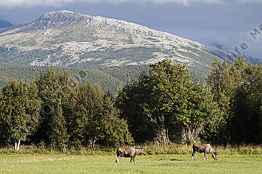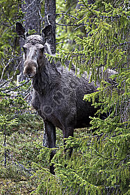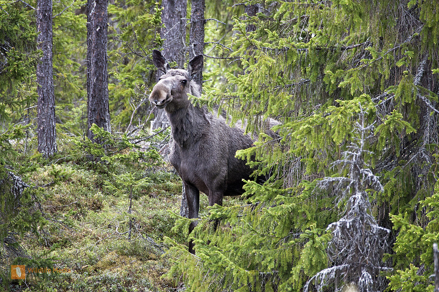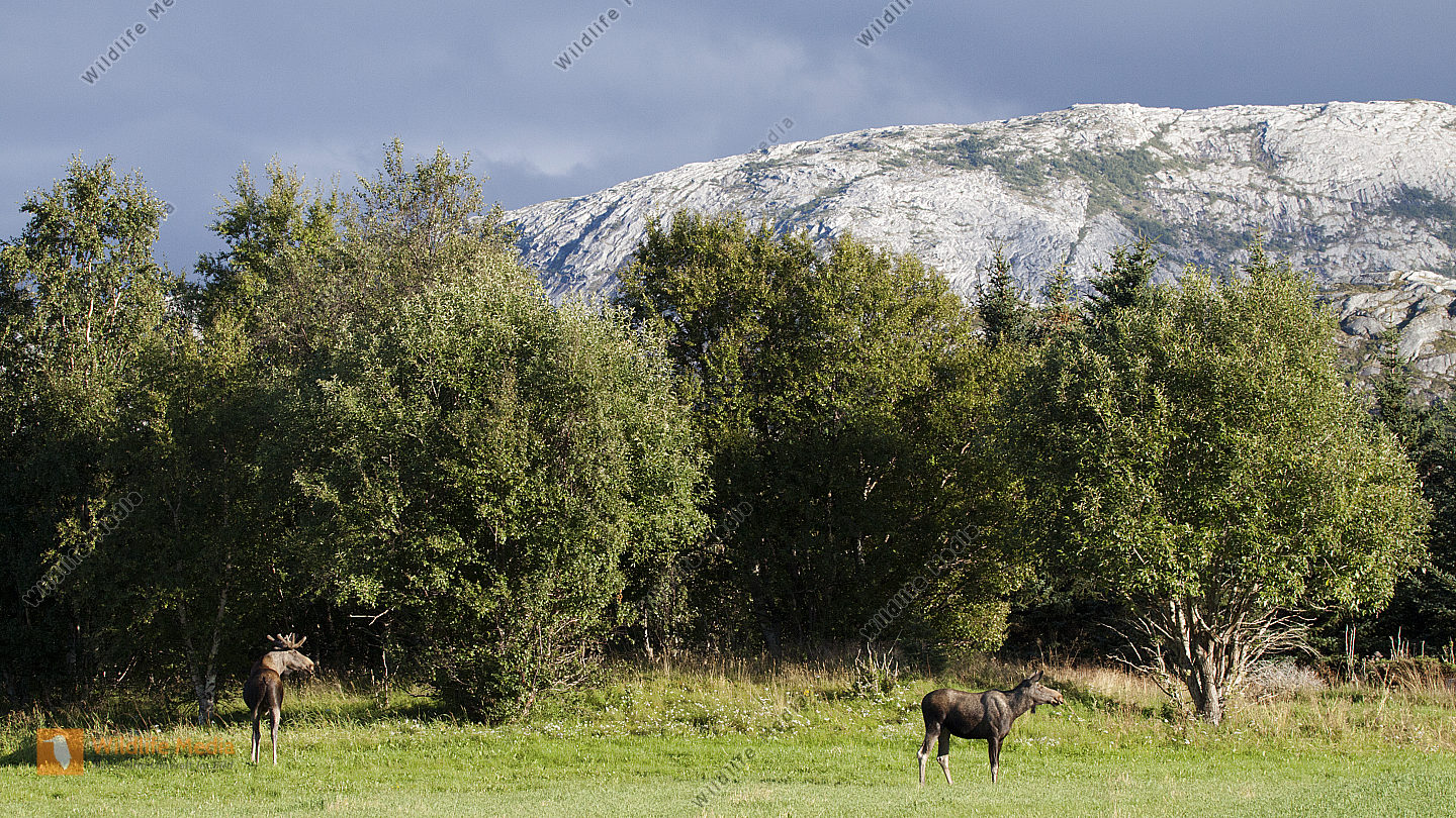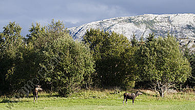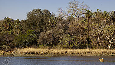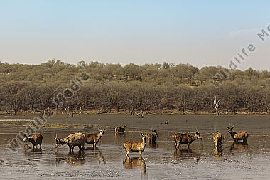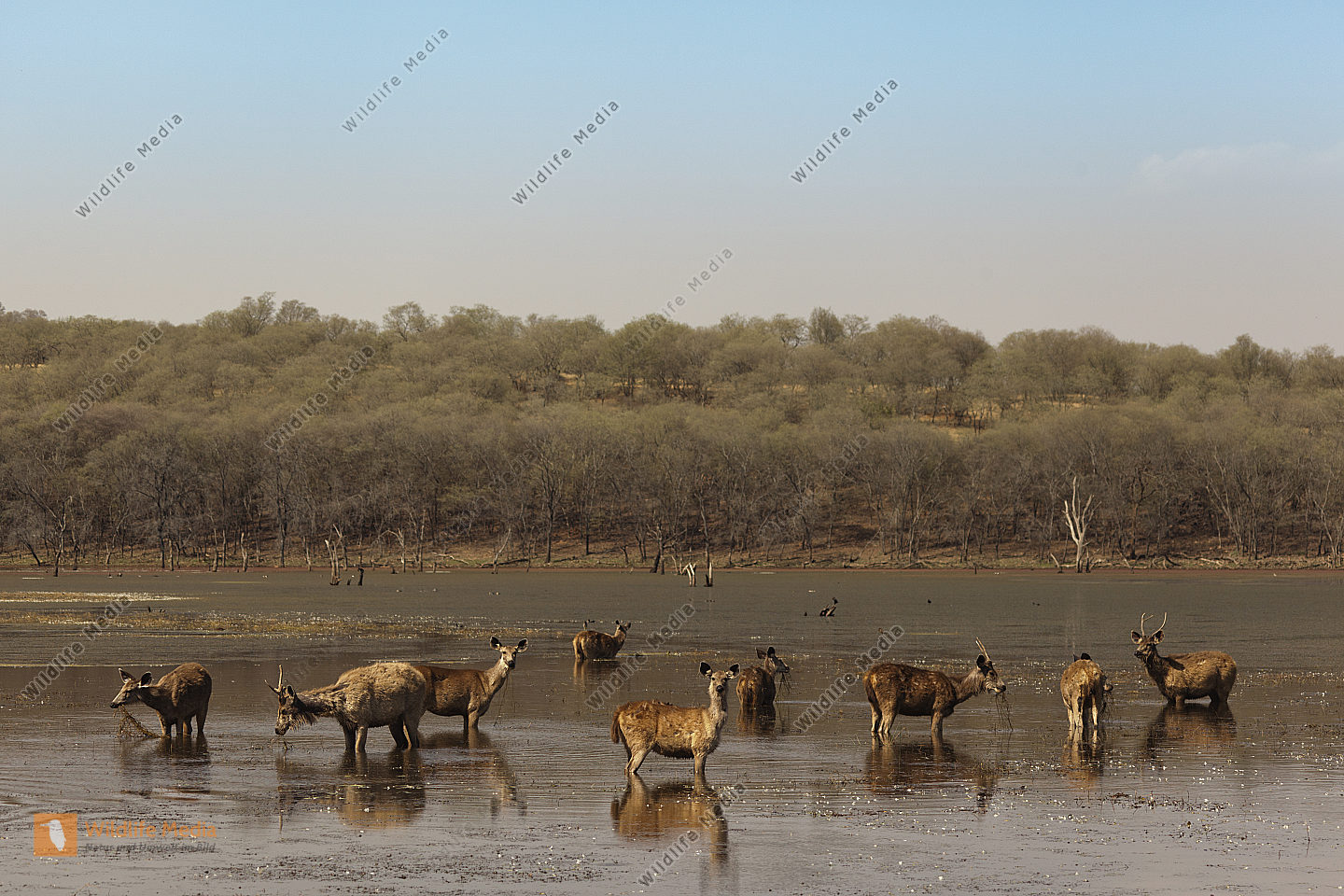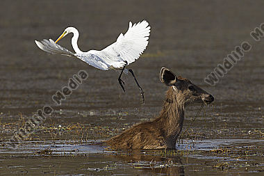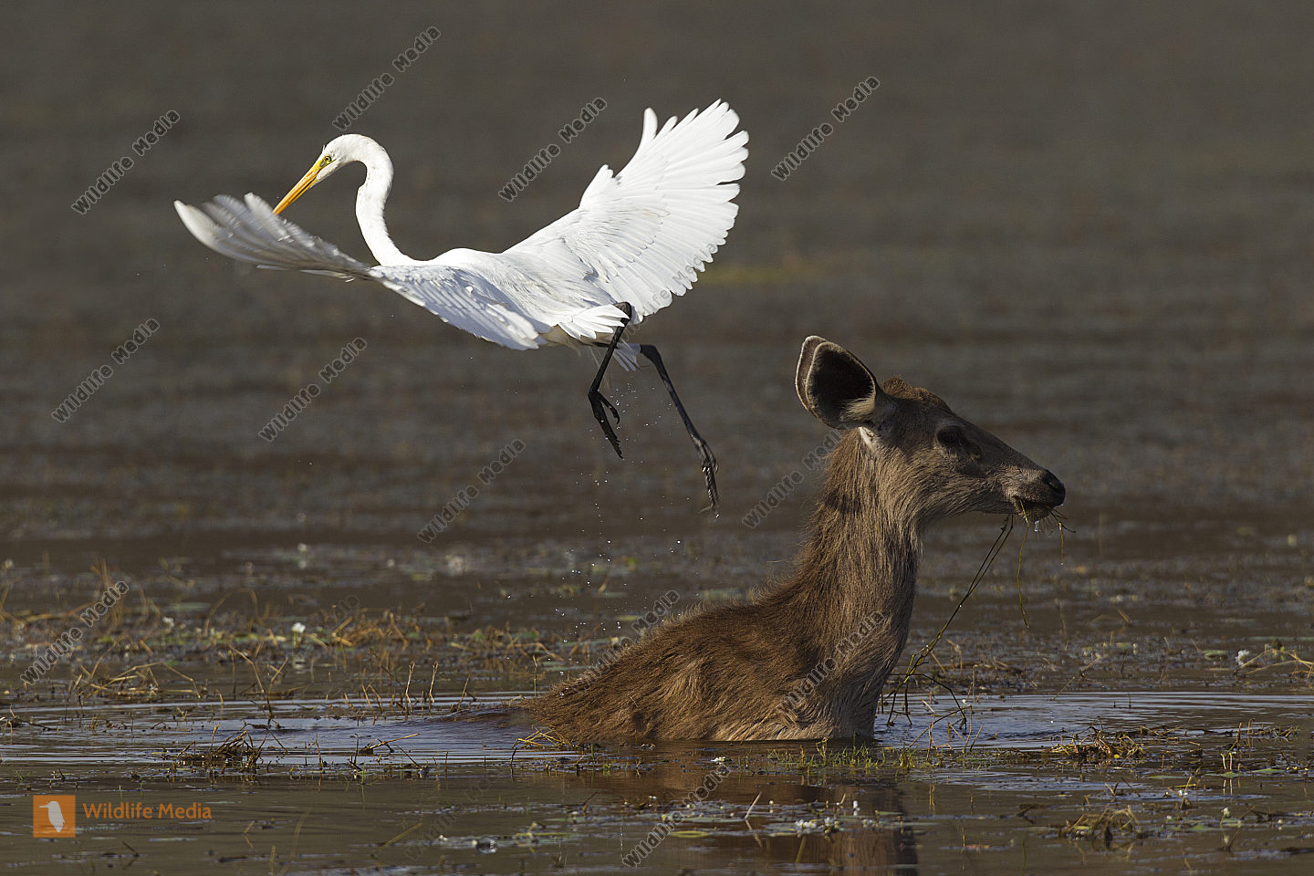 Sambar Hirschkuh und Hirschkalb mit Reiher
