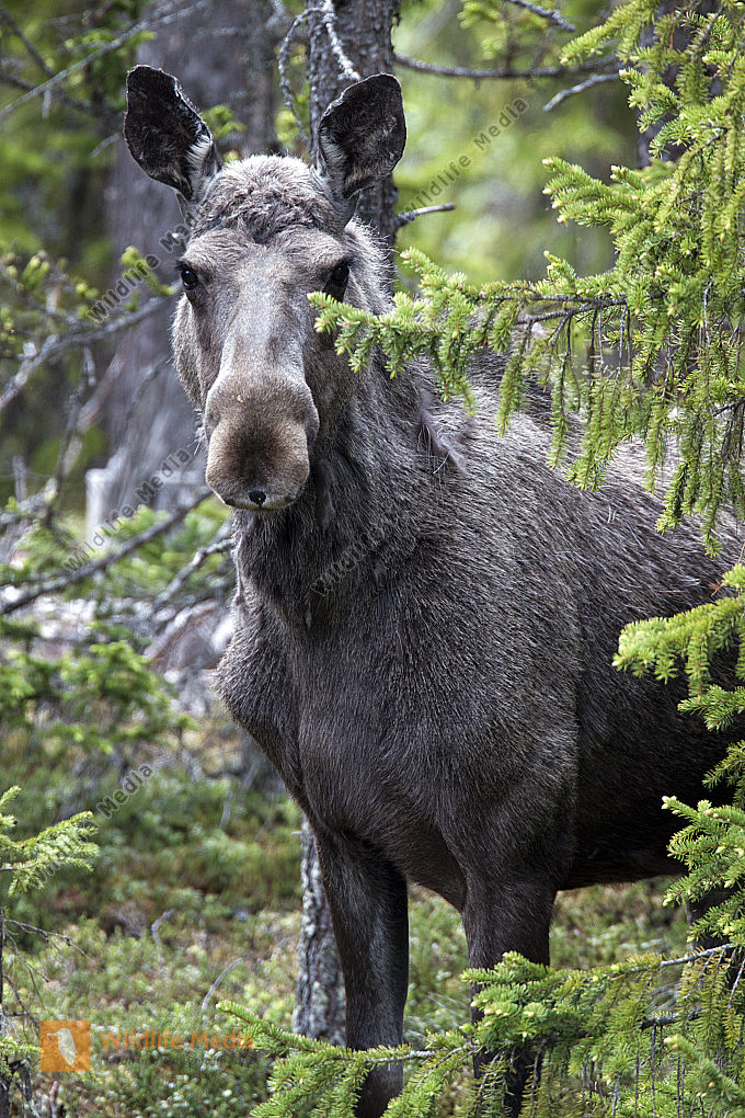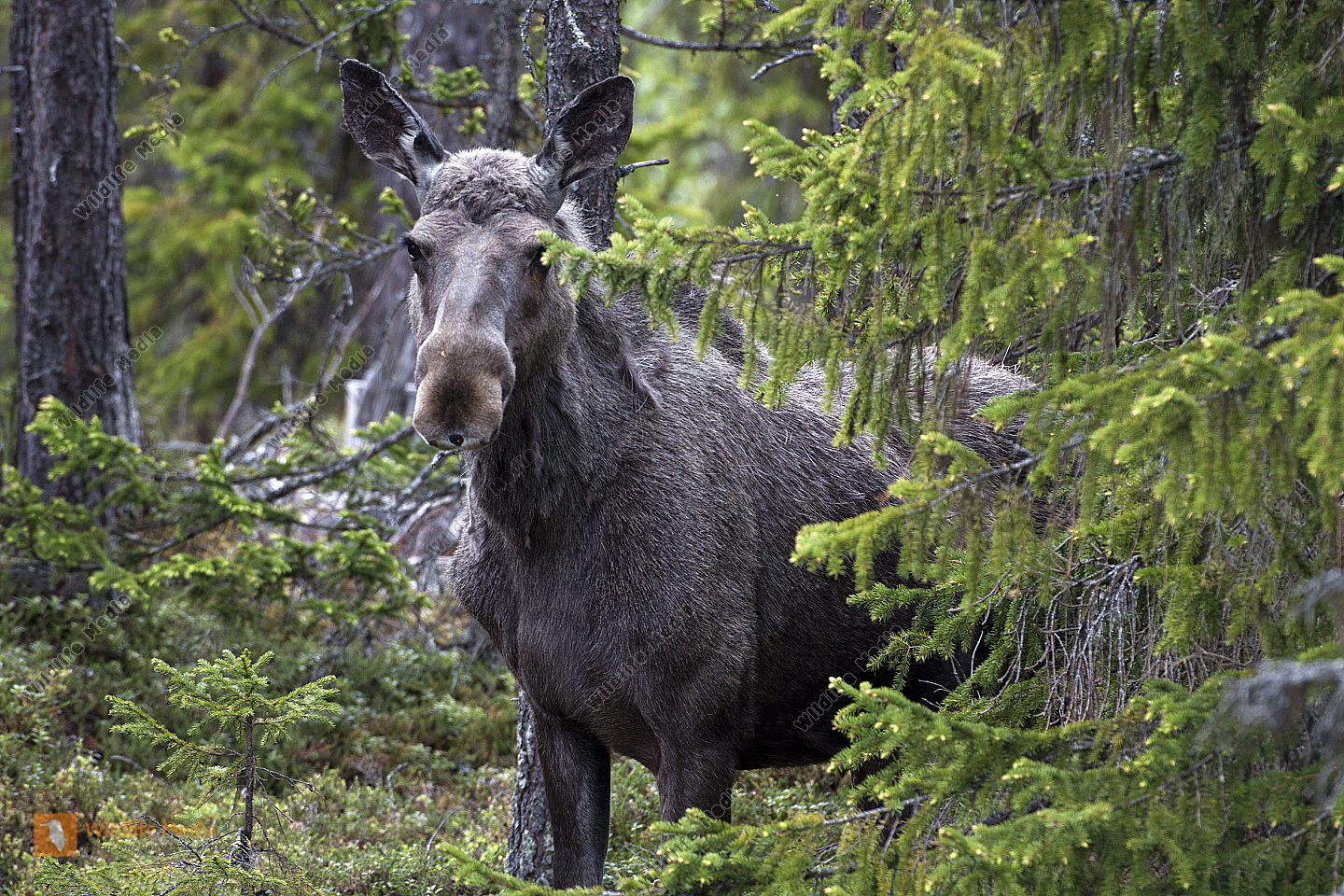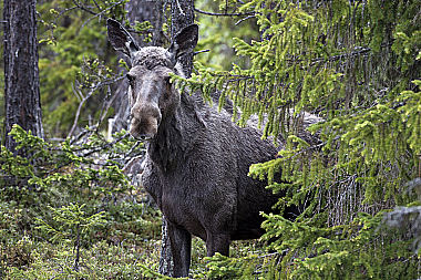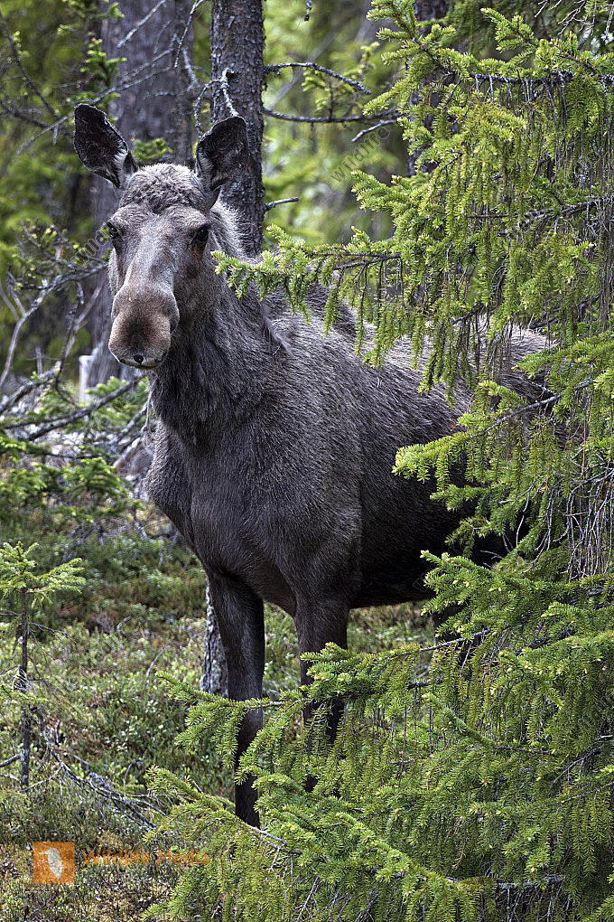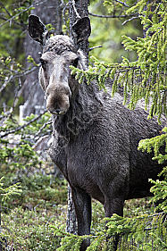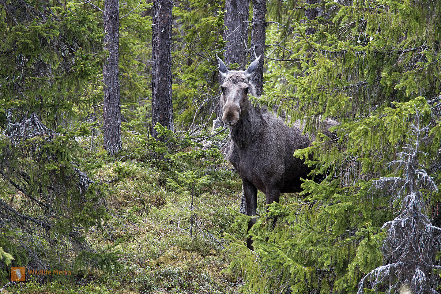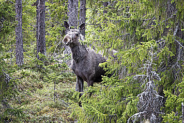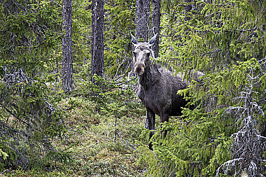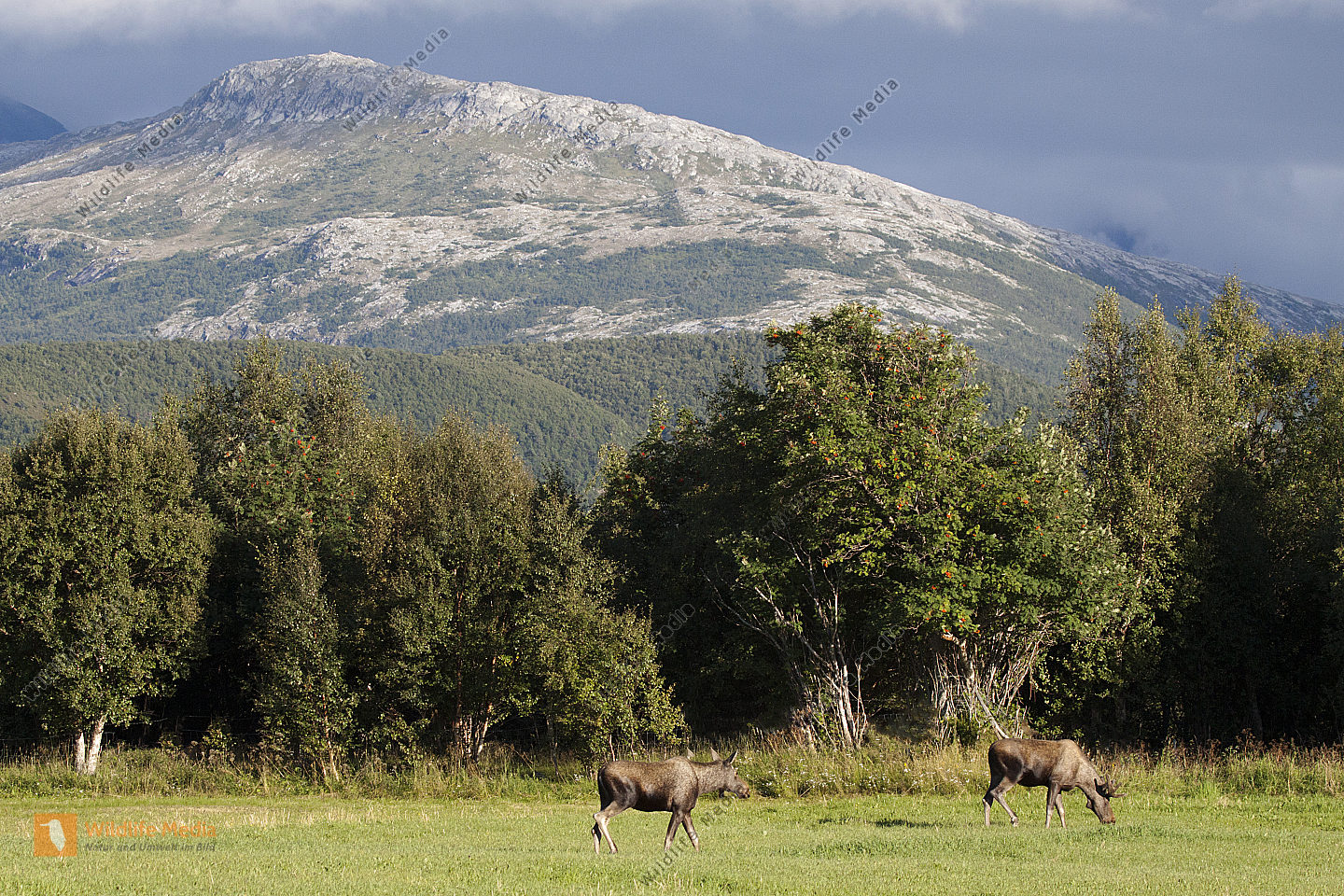 Sambar Hirschkuh und Hirschkalb mit Reiher