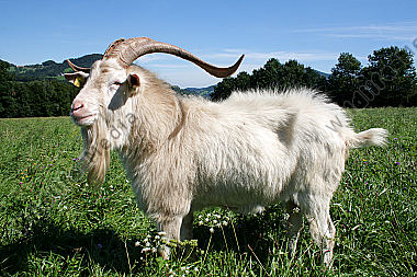 Hausziege Capra aegagrus hicrus Stall Portrait