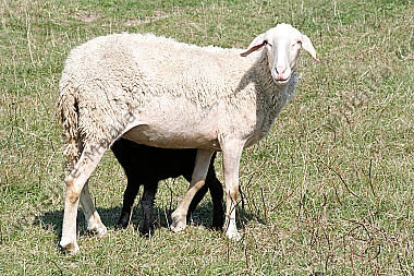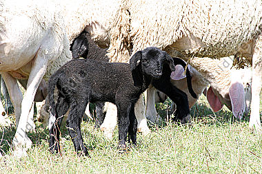 Texelschaf Ovis aries auf dem Deich/Fehmarn