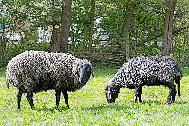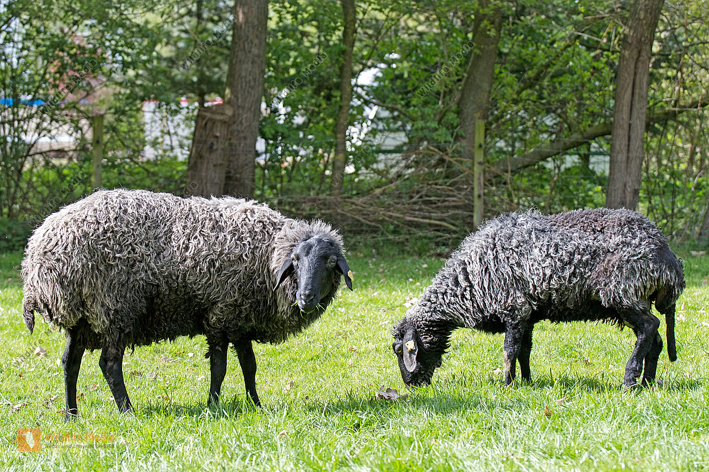 Texelschaf Ovis aries auf dem Deich/Fehmarn