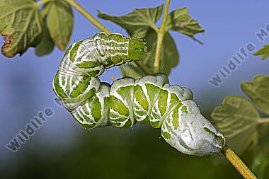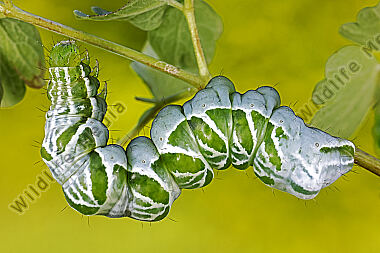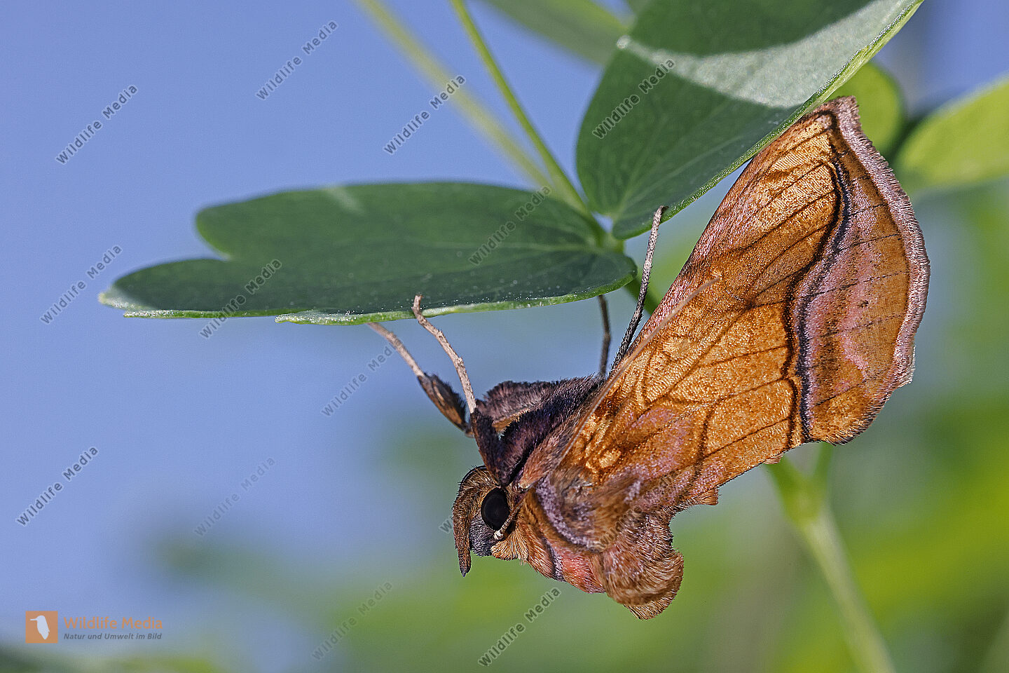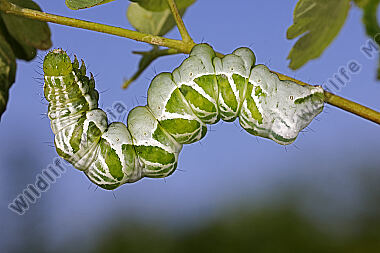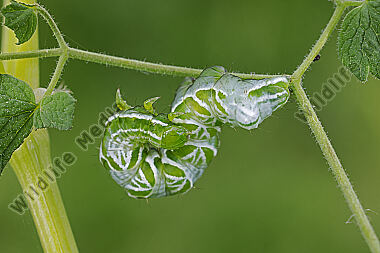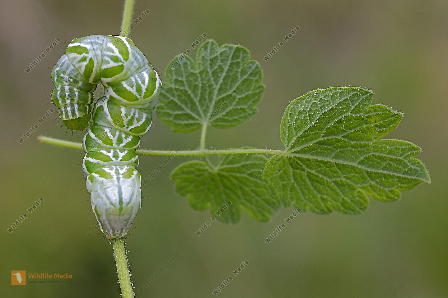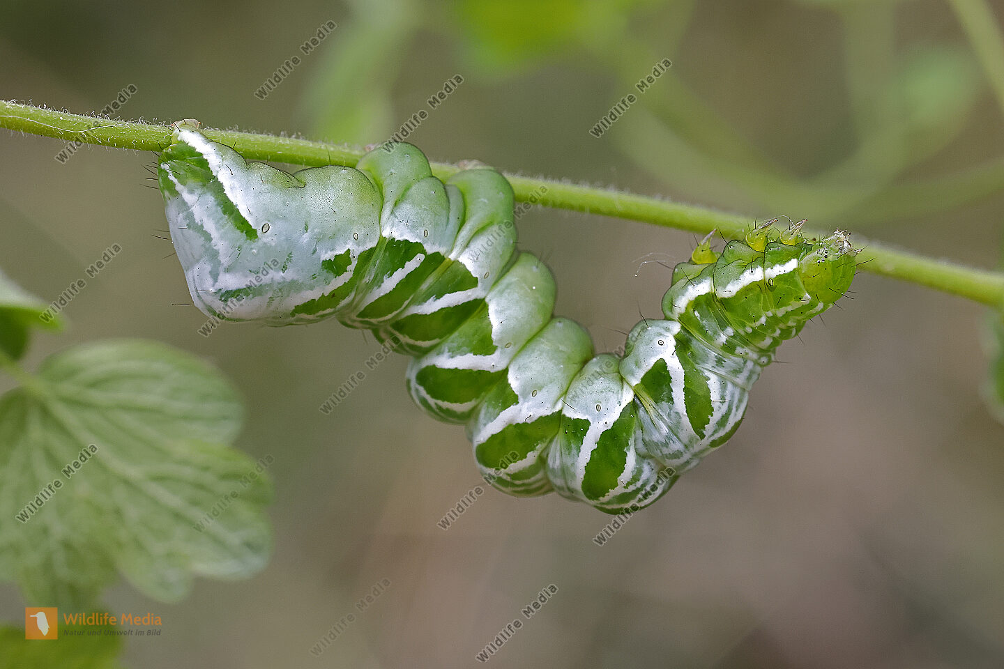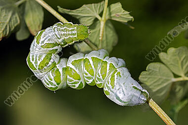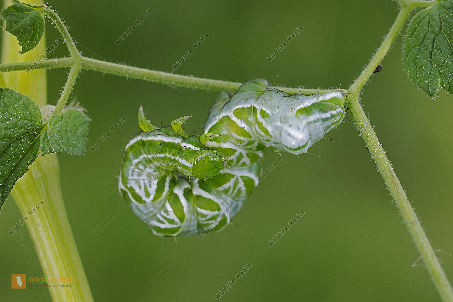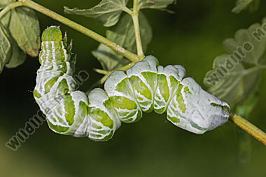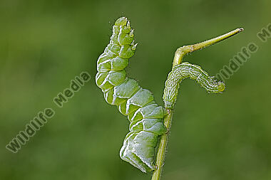 Espers Wiesenrauten-Silbereule halberwachsene Raupe mit Großer Wiesenrauten Goldeule Raupe