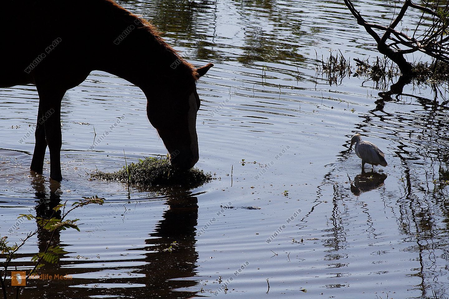 Pferd mit Sumpflandschaft