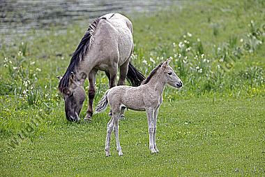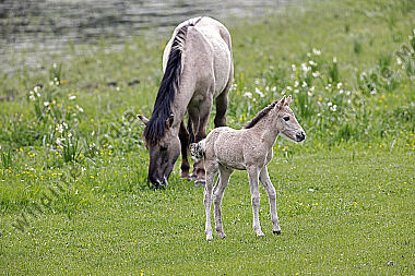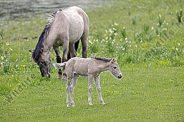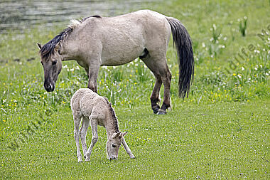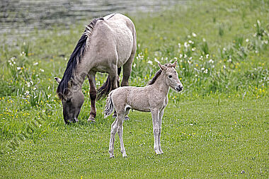 Pferde Epuus Stute mit Fohlen auf der Weide