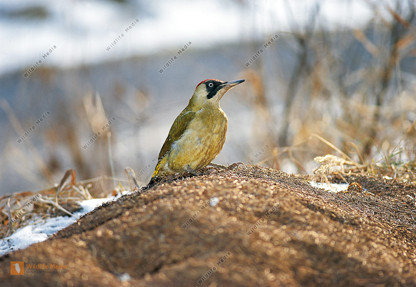 Gruenspecht Picus viridis Winter Nahrung Formica rufa